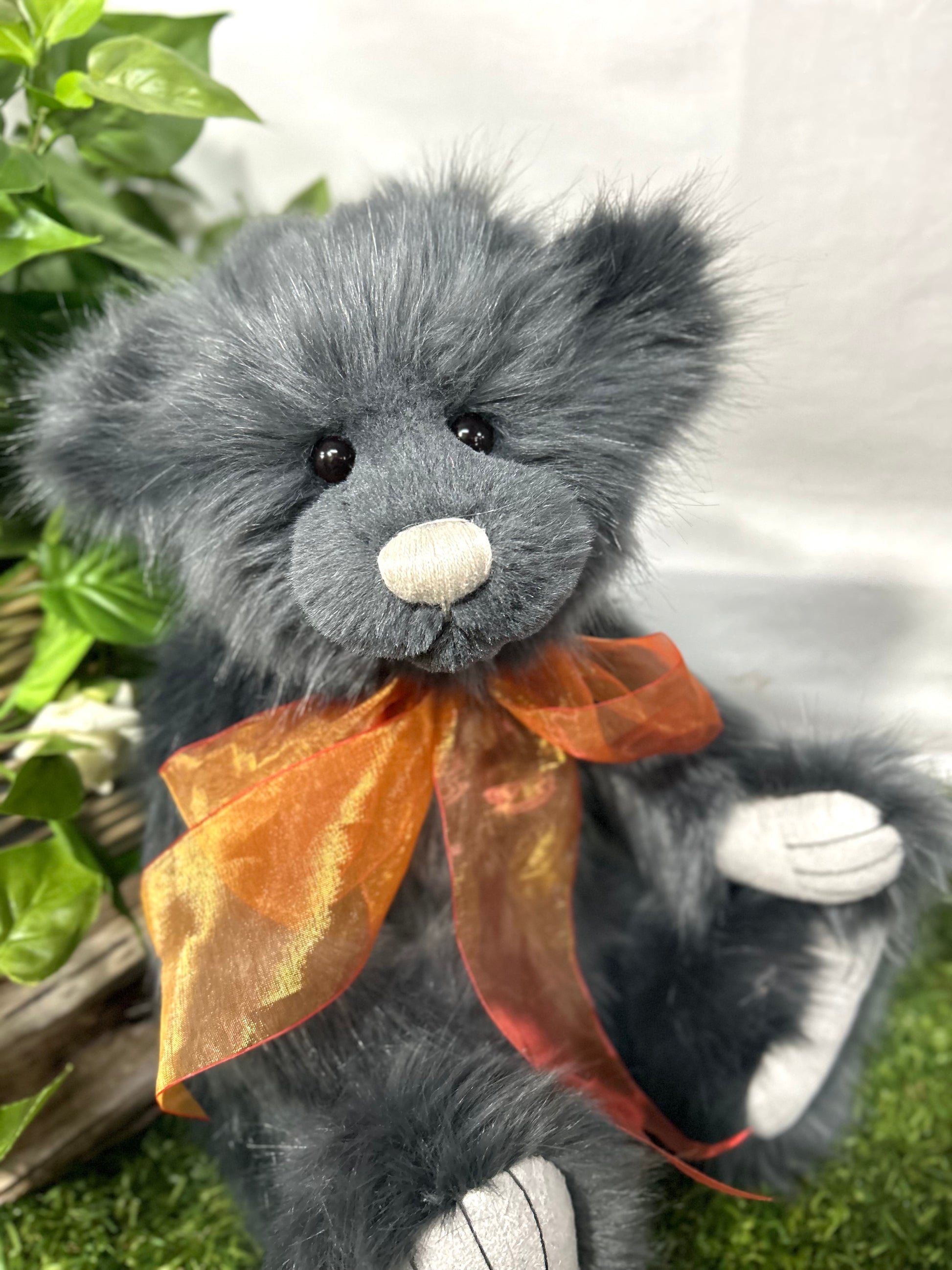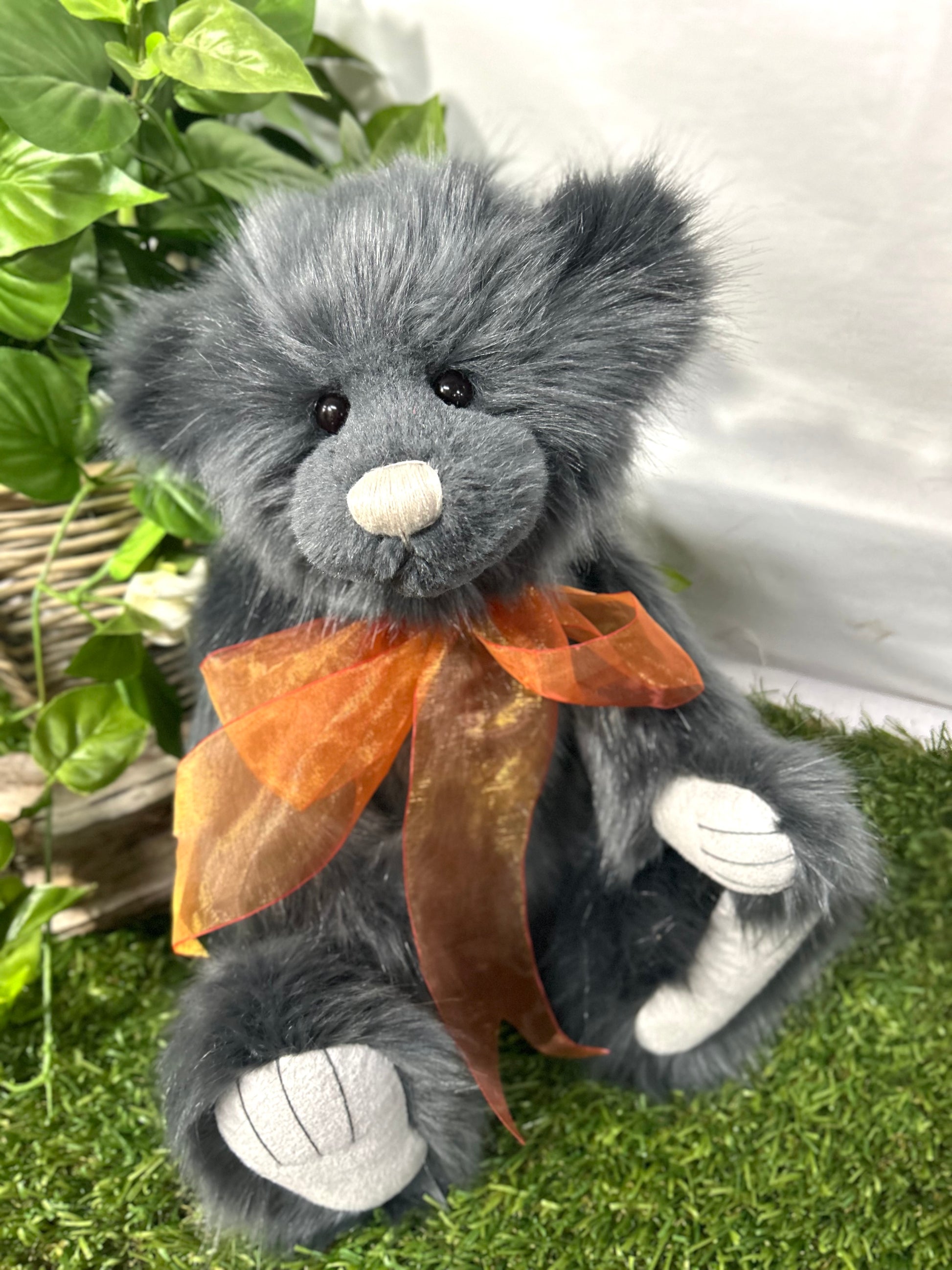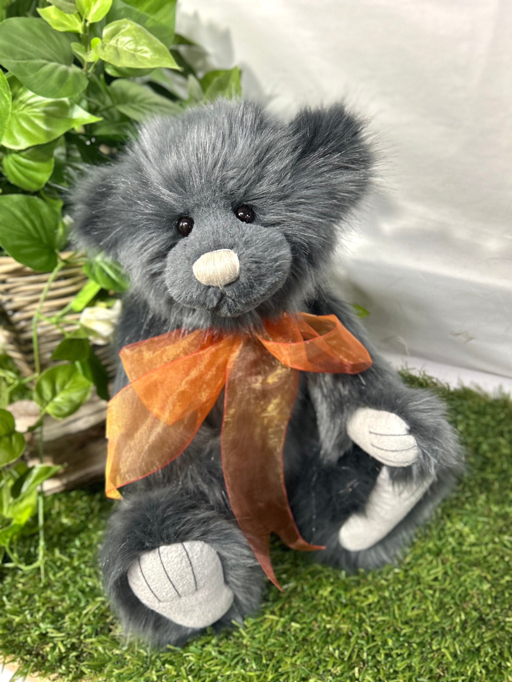 Isabelle Lee designed Armstrong an epic adventurer with a sweet little face, smokey ink fur, completed with a burnt orange organza bow