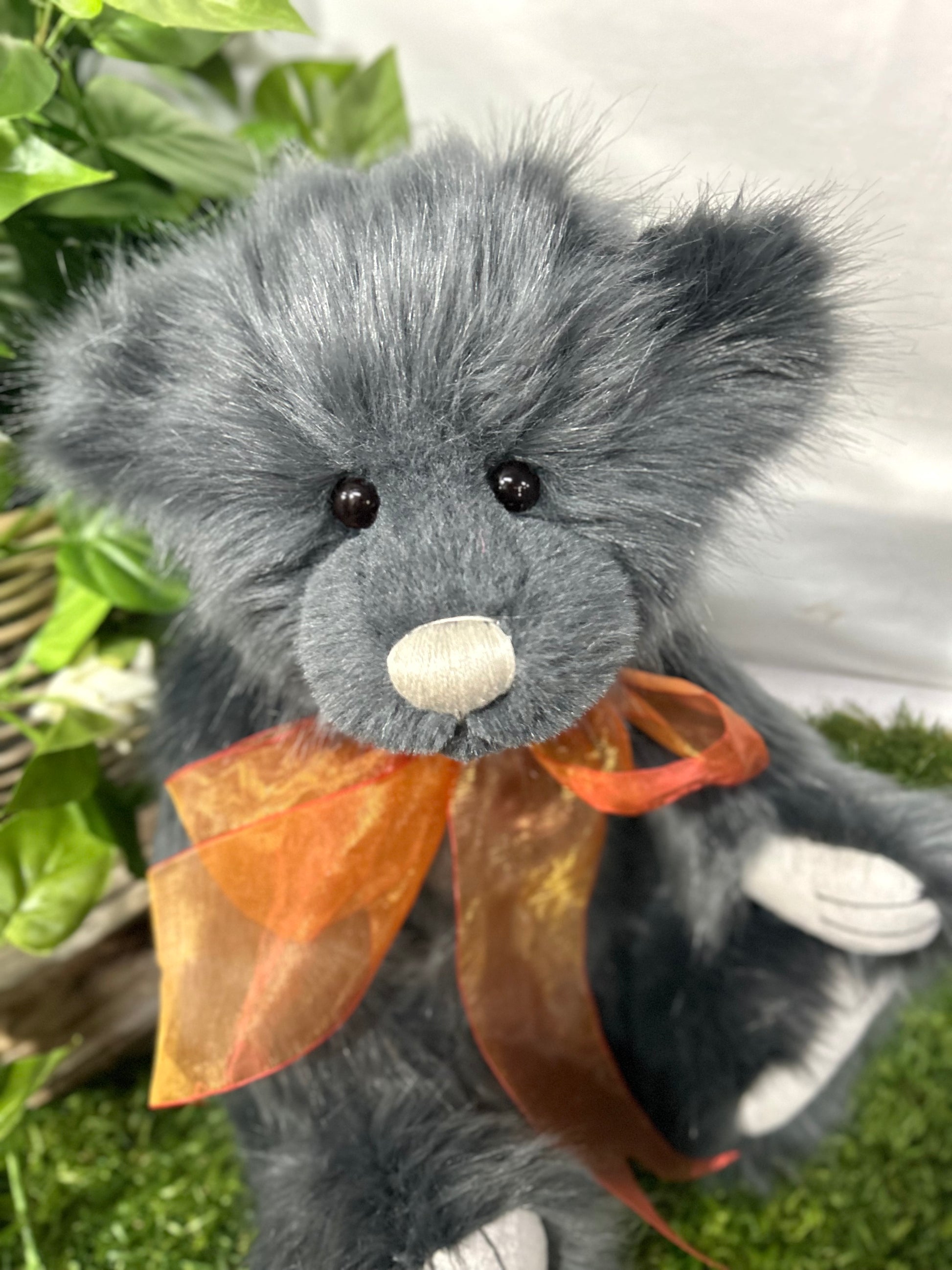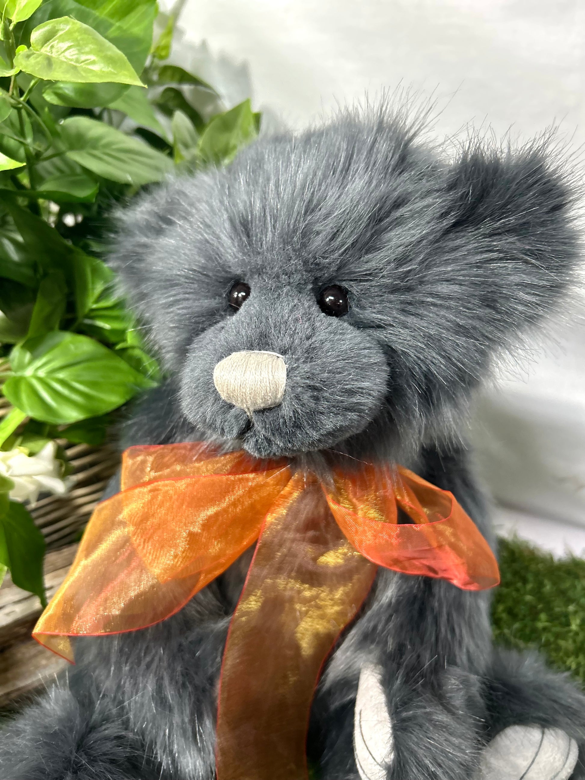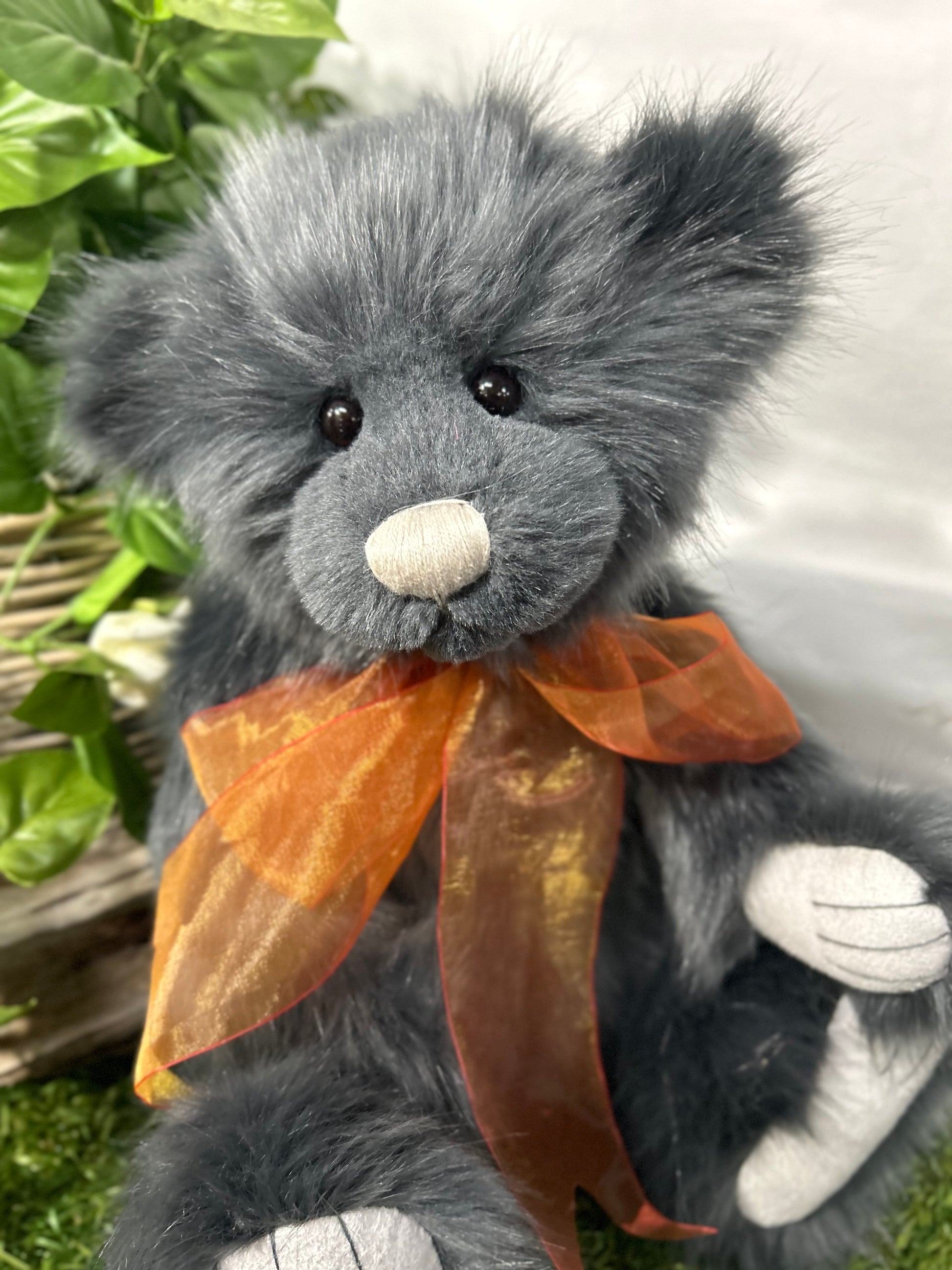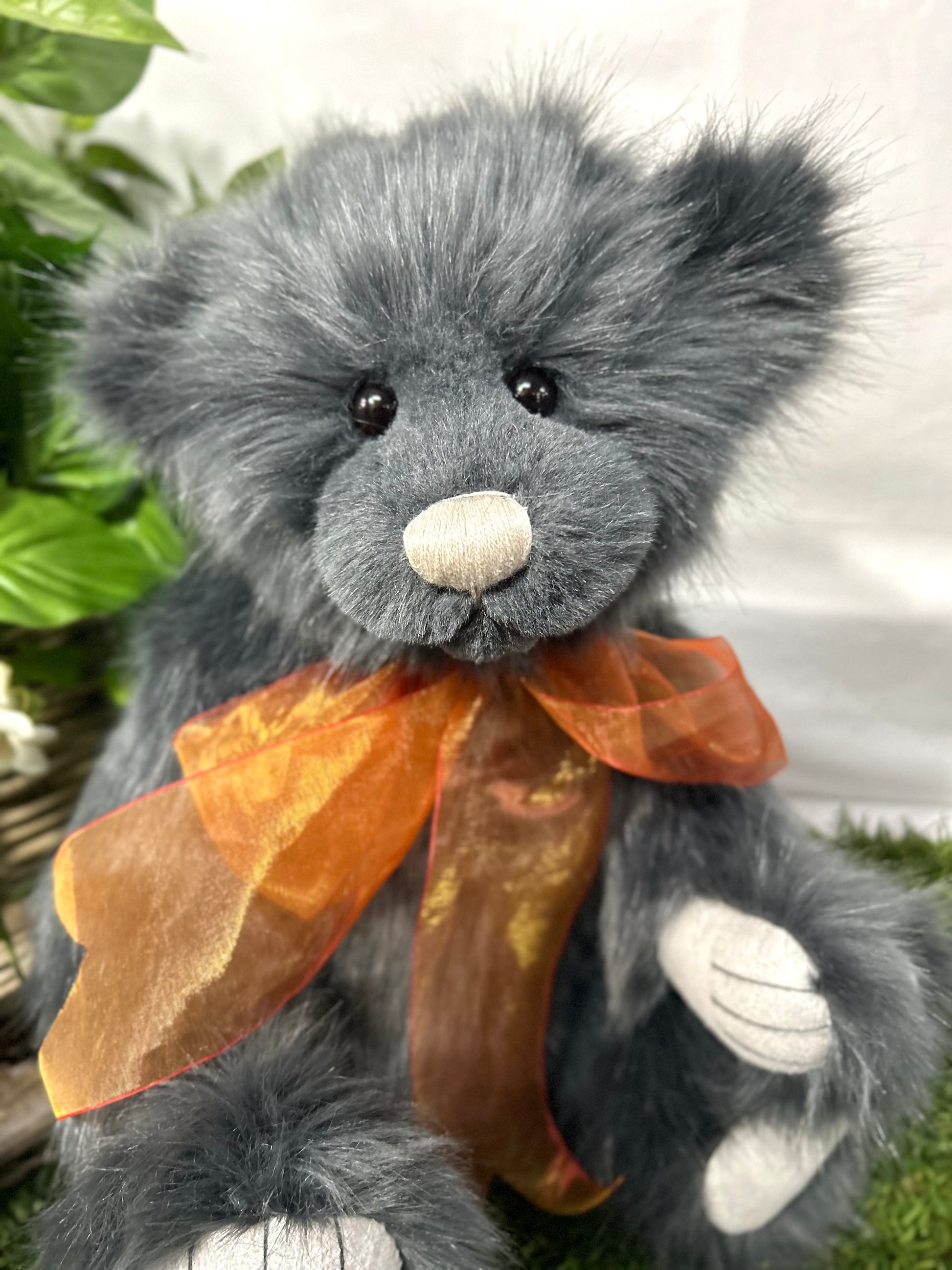 Isabelle Lee designed Armstrong an epic adventurer with a sweet little face, smokey ink fur, completed with a burnt orange organza bow