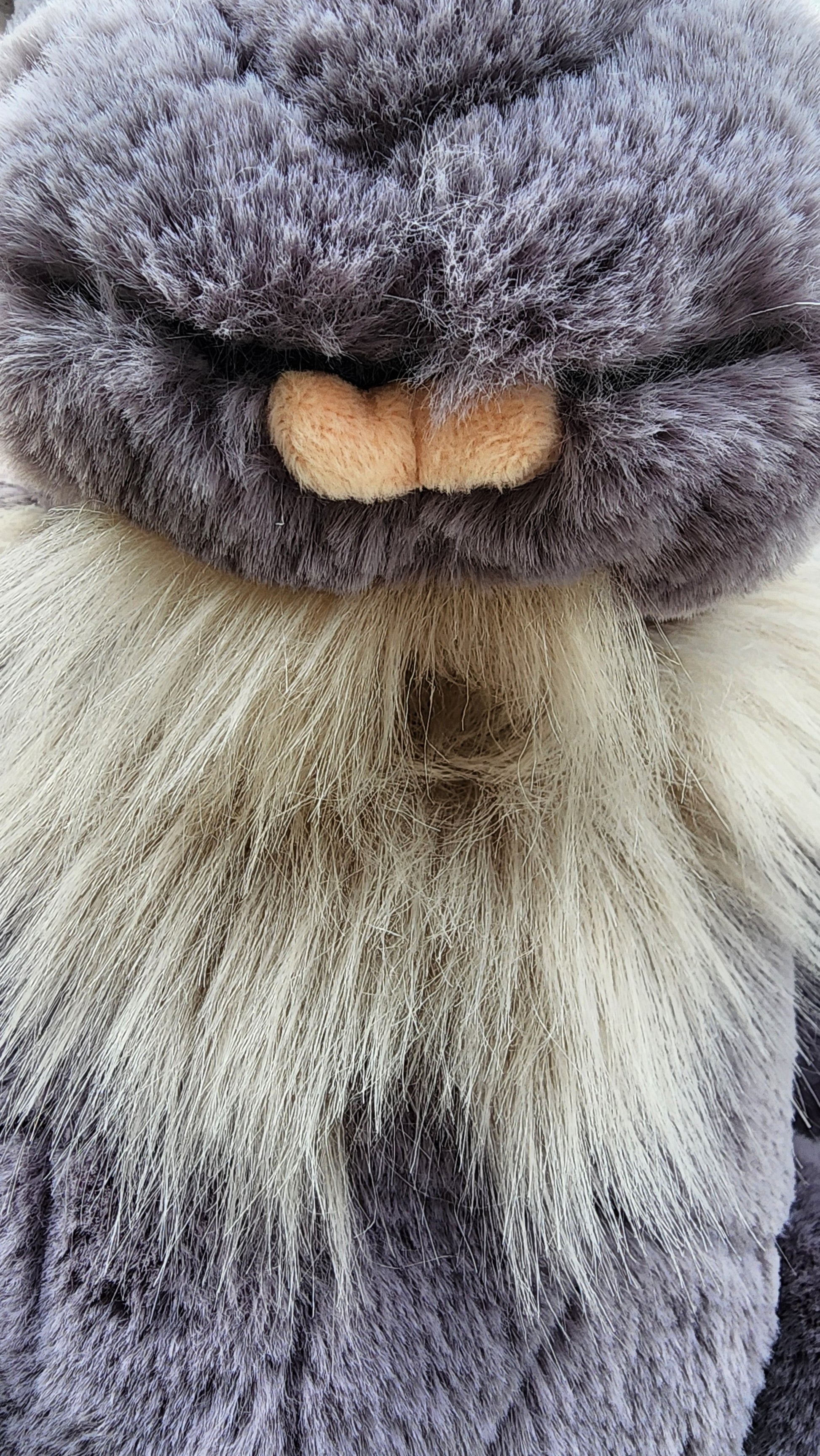 Crafted from luxuriously soft grey plush with lighter accents, Cobblestone has a soft beard, curved horns, and friendly expression which give him unmistakable character. Broad paws and detailed stitching add to his solid, comforting presence. He’s a true gentle giant, strong, steady, and full of heart. His non-jointed, machine-washable design makes him easy to care for and always ready for another day by your side.