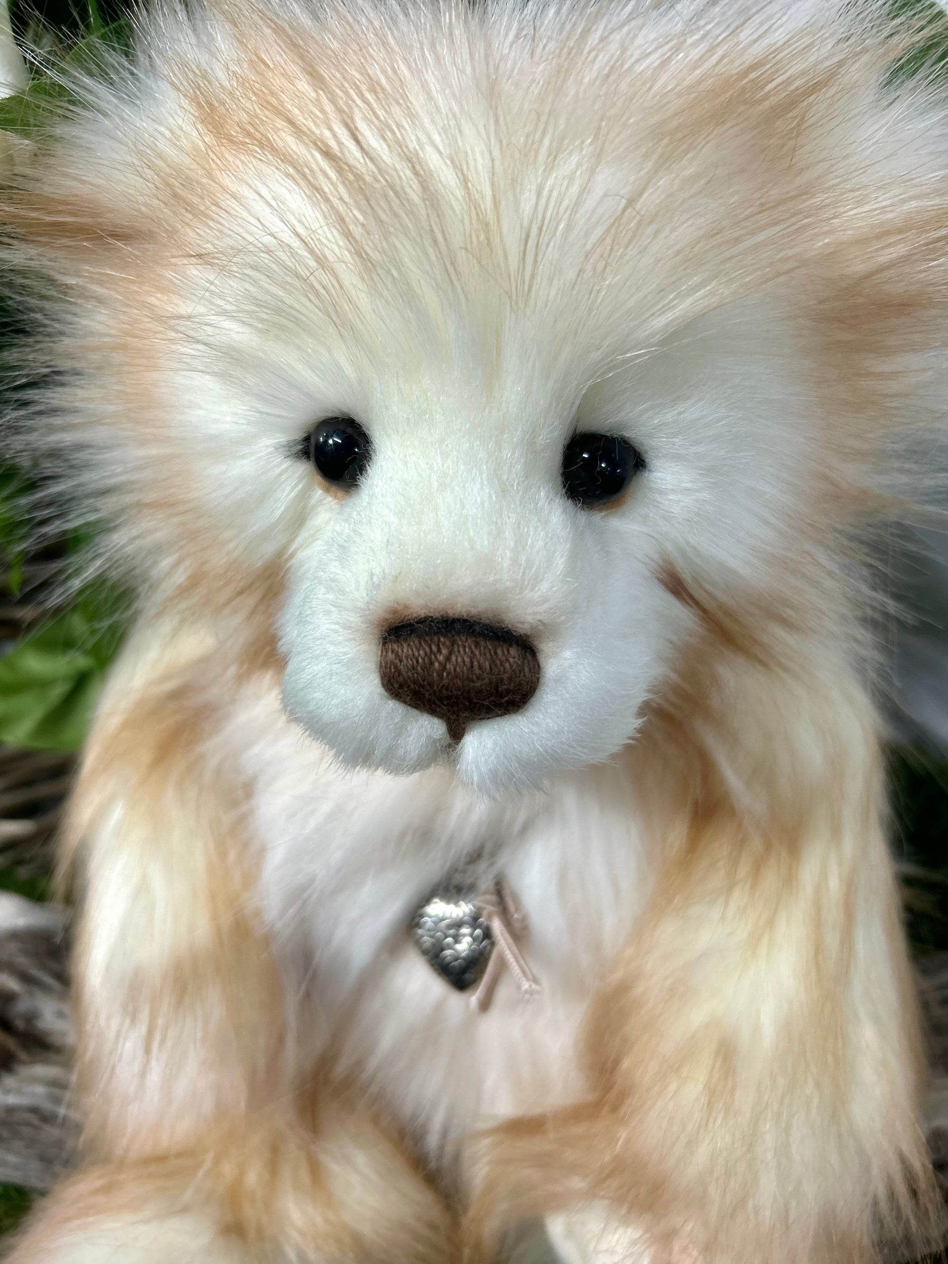 Anniversary Willamena is a 2025 Cuddle Time Exclusive bear and based on Willamena from our 2020 collection. Our Anniversary bears this year have been created to mark our 20th Anniversary! This plush bear is adorable, one glance and you will fall in love with her bear-utiful face and luxuriously soft cream fur with ginger highlights. She has large, sculpted paw pads with tickly toe detailing and always wears her favourite heart necklace.