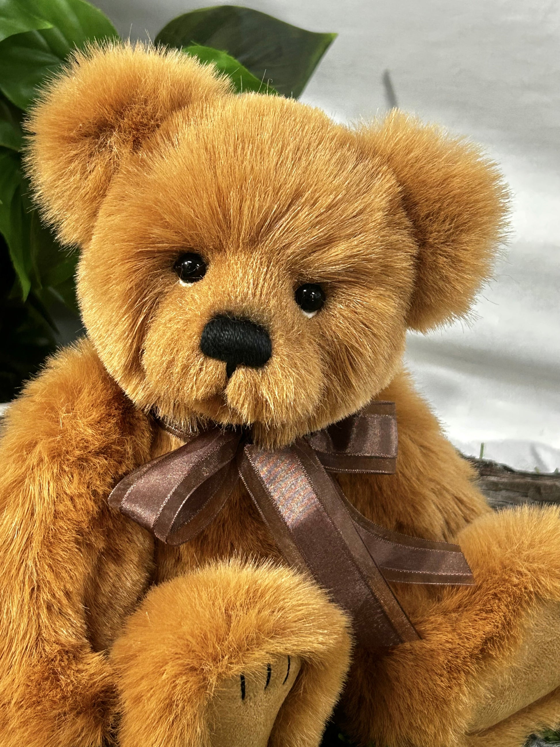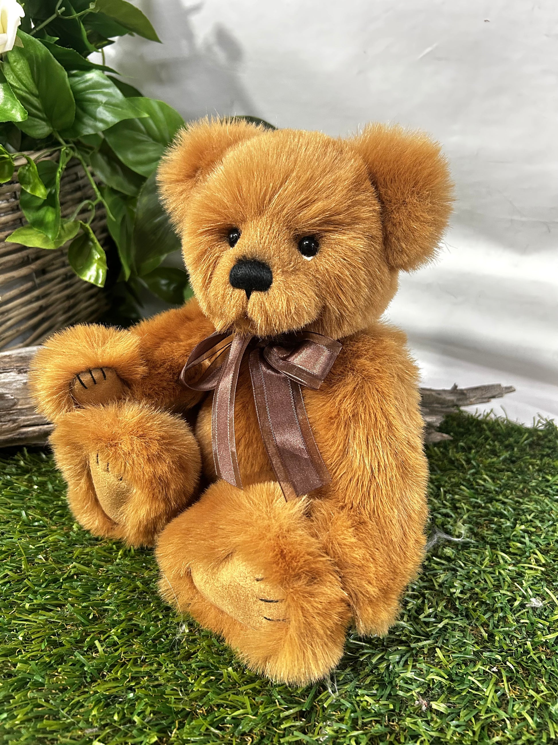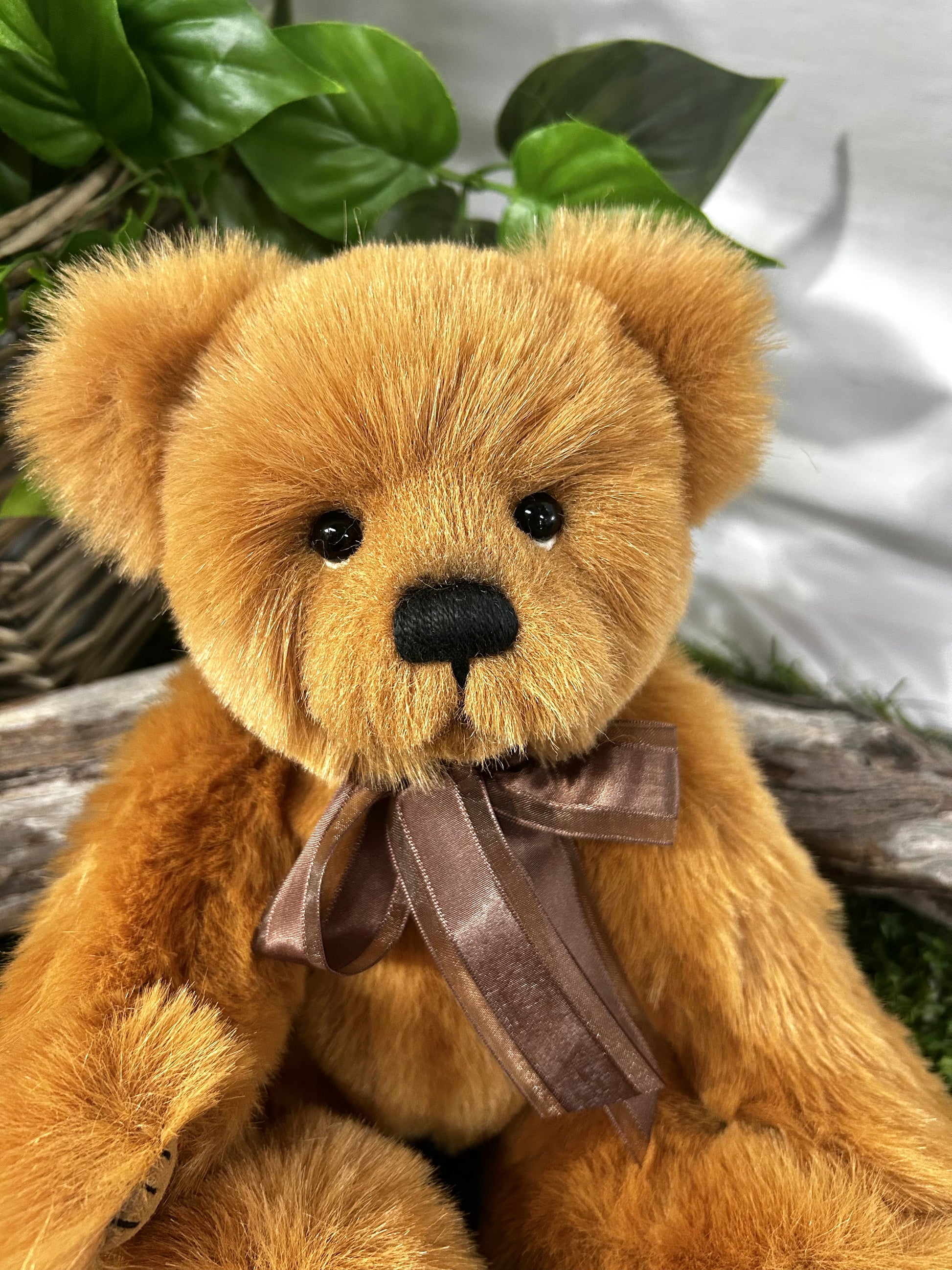 Robinson has been created using a caramel coloured plush, matching his sueded look paw pads and organza bow. This bear would not be complete without the signature Charlie Bears ‘who me’ look.