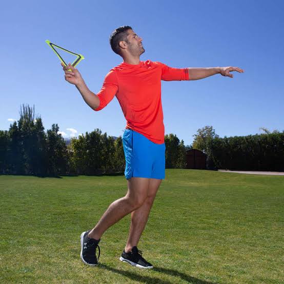 A high performance outdoor boomerang, the Aerobie Orbiter flies out about 90 feet and then it really does come back. The Orbiter boomerang combines a high tech, triangular design with a bright colored, soft rubber edge. These features make it easy to throw and see in flight and soft to catch. Throwing instructions printed on the boomerang will help you learn to play catch with yourself in no time.