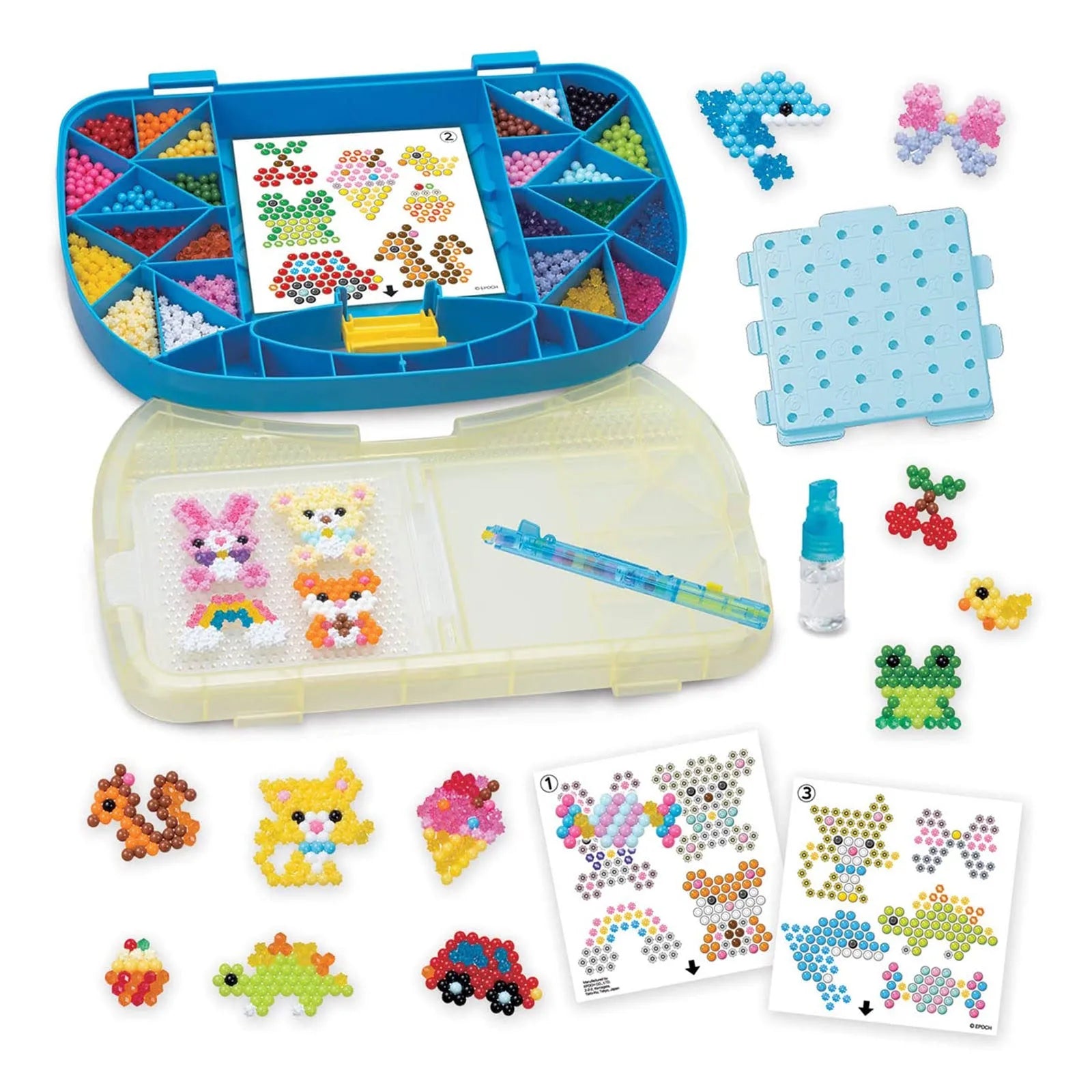 The Beginners Carry Case is suitable for those who have just begun their Aqua-beading adventure it even comes with two template sheets to inspire you. The set comes complete with 900 beads in 24 colours, more than enough to create whatever your imagination desires. The set comes with a handy carry case to store all your beads, flip tray, and template sheets as well as a double-sided Aquabeads pen and sprayer.