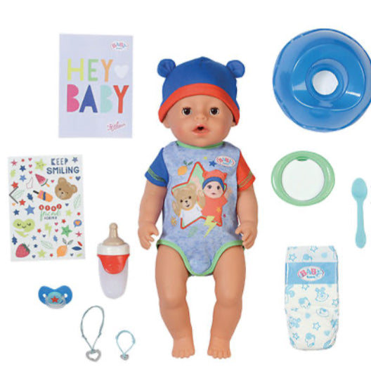 The Baby Born doll has a soft Soft Touch body and comes with 10 "magical" functions, as it can 1. eat, 2. drink, 3. potty (both pee and large), 4. pee in the diaper 5. cry, 6. bathing, 7. draining water after bathing, 8. sleeping, 9. opening and closing the eyes (turn the pacifier in the doll's mouth), 10. moving. All functions work without the use