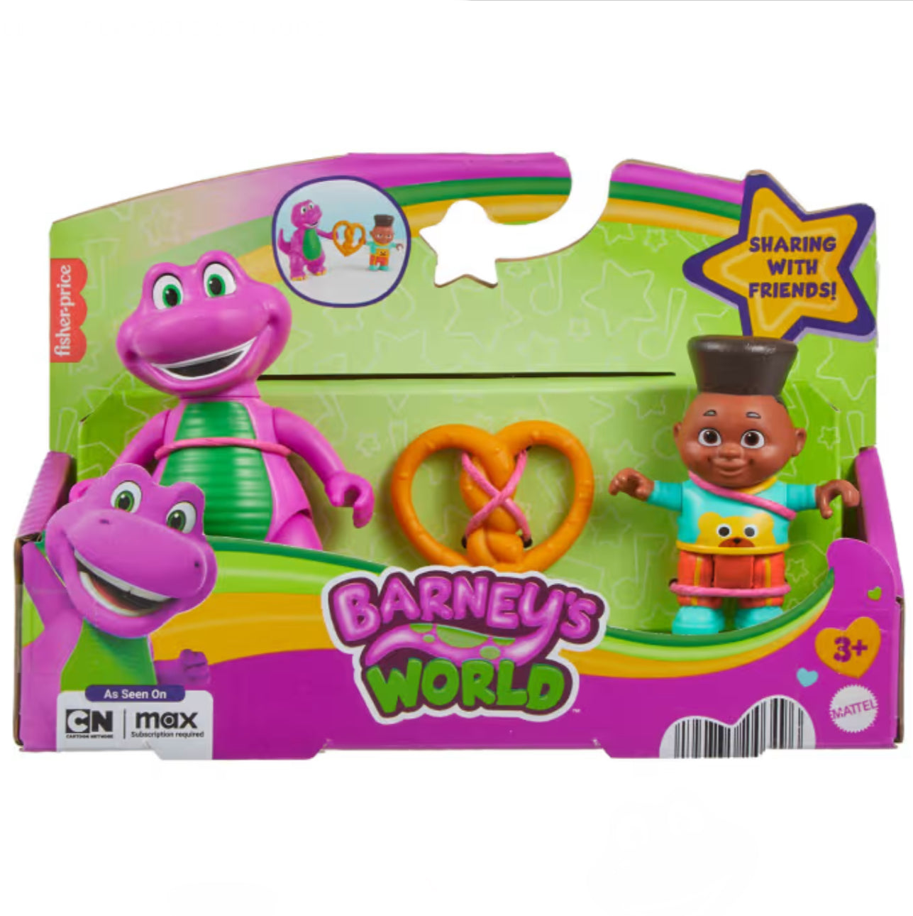 Kids can practice good sportsmanship with this poseable figure set featuring Barney’s World characters and themes. With the figures and accessory connected, kids can imagine the friends and additional Fisher-Price figure sets featuring Barney’s World characters for more preschool-friendly imaginative play.
