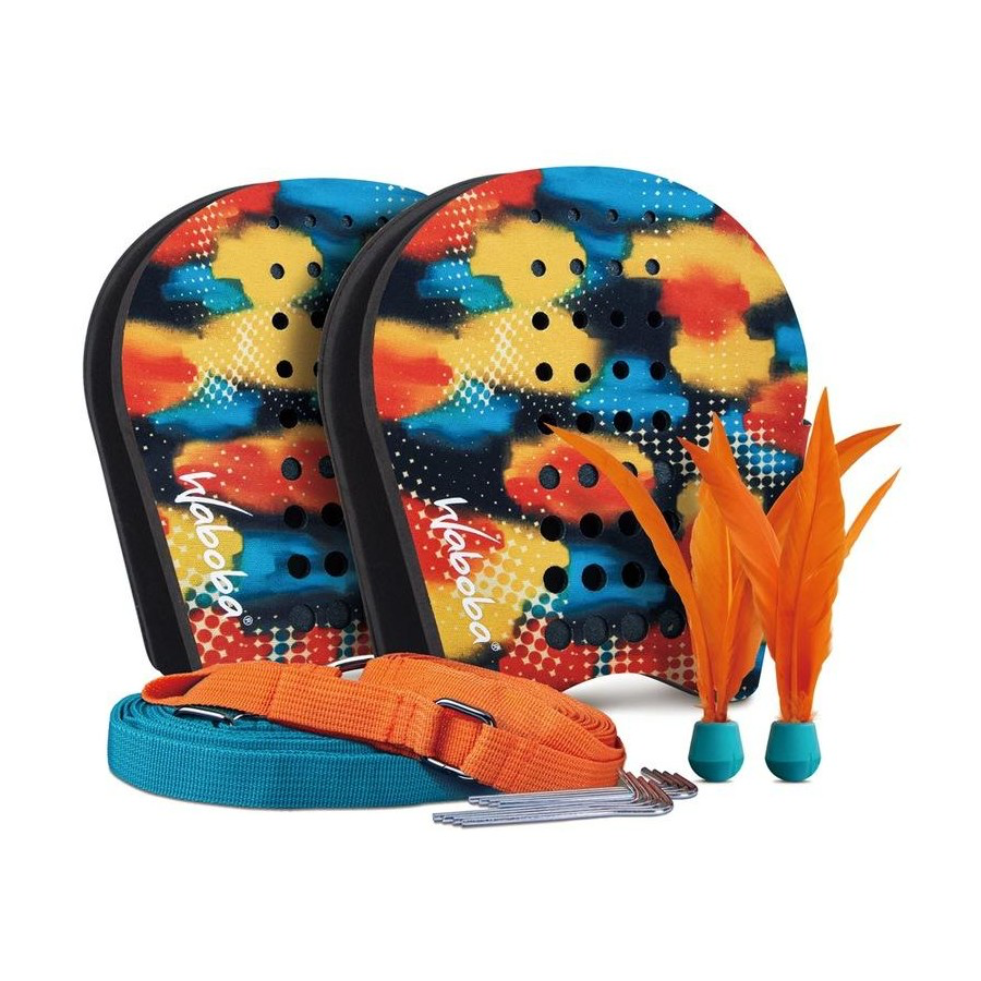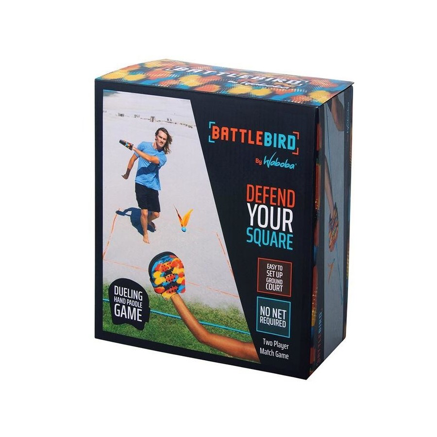 The two player game you never knew you needed! Introducing Battlebird! A two player game featuring VOLI hand paddles, a new fast spinning birdie, and ground court straps. Score points by hitting the birdie into your opponents square. Play in the backyard, park, or beach. Features: Court straps and stakes (square size 2x2m / 6.6x6.6 ft)