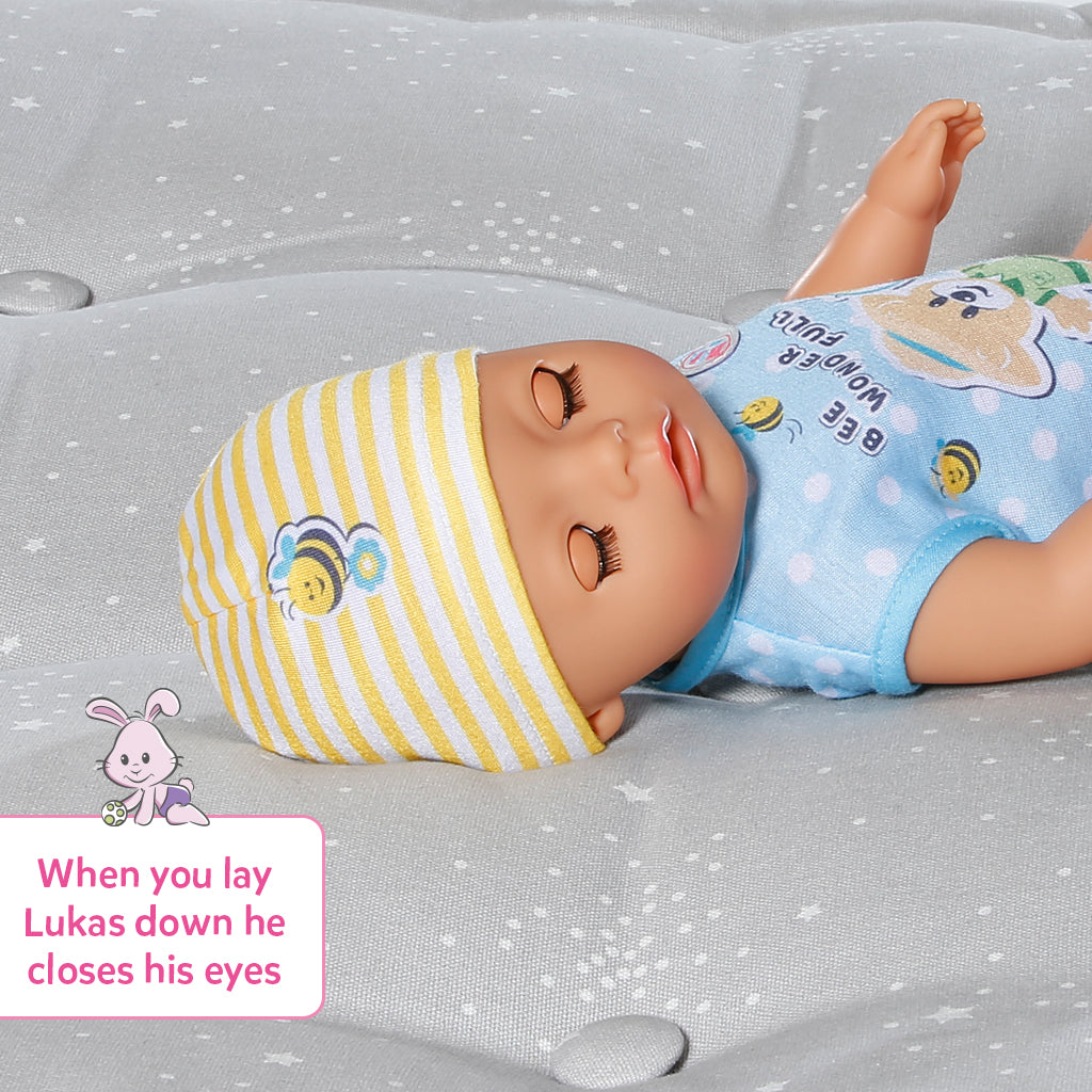The cutest baby boy starter dolls for little ones, BABY born Lukas has 7 lifelike functions and comes with everything he needs for a new doll parent!