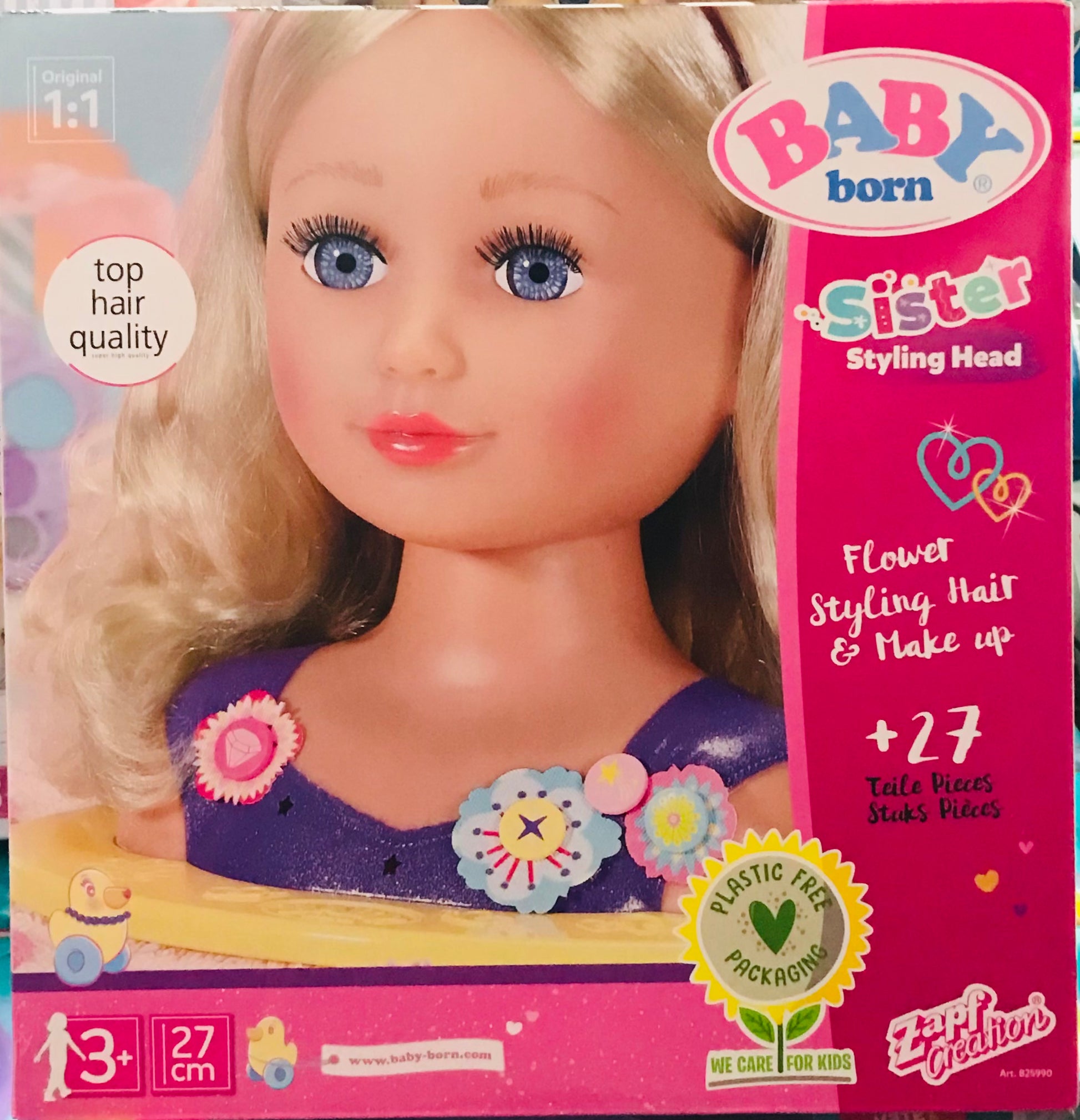 Baby Born Sister Styling Head plus 27 accessories including makeup, brush, hair-ties and more!