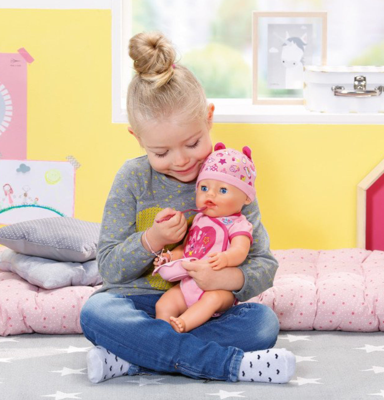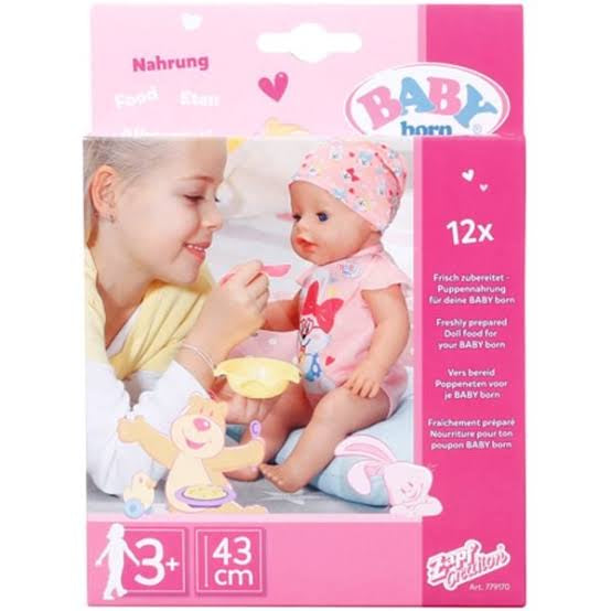 This is tasty! This dissolvable doll food was specifically formulated for your BABY born. Comes with 12 individual serving portions, just add water and stir.