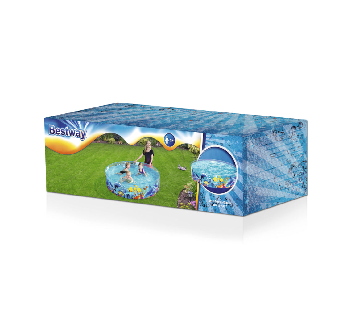 Your children will be making a splash among their friends this summer with our Bestway Fill-n-Fun Play Pool. The best thing about this pool is that it is super-easy to set up with no inflation required. Just unfold it out onto the ground, fill it up with water and let it expand. The rigid sidewall and floor made from sturdy pre-tested eco-friendly PVC vinyl, then maintain the shape of the pool and keep it sturdy to withstand robust use. There are also colourful graphics of marine life on the pool wall so that your children can go on adventures with their undersea friends. And once the adventures are over, just release the fast-drain valve to easily empty the pool and store until the next play day. Plus, a repair patch is included in case of accidental leaks so that your children can continue to enjoy aquatic fun for years to come.