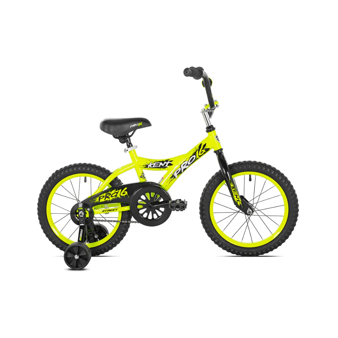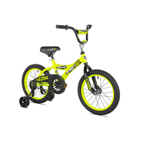 Let your little one ride in style with the Kent Pro 16"! Featuring a vibrant neon yellow tig-welded steel frame and a sturdy steel fork, this bike is built to handle all the fun. The rear coaster brake makes stopping a breeze—just pedal backwards! With an adjustable seat and handlebars, it’s easy to get the perfect fit as they grow. The removable training wheels allow mum or dad to decide when it’s time to go pro! Your child will love riding around the neighbourhood on the Kent Pro 16"!