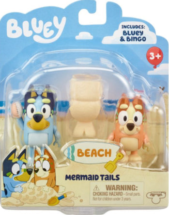 Bluey Figure 2 Packs have two adorable Bluey figures to create fun adventures with. There are three new Figure 2 Packs to collect: "Mermaid Tails", "Beach Day Play" and "Action Heroes". Join Bluey and her family on some imaginary adventures and have some fun with your favorite characters