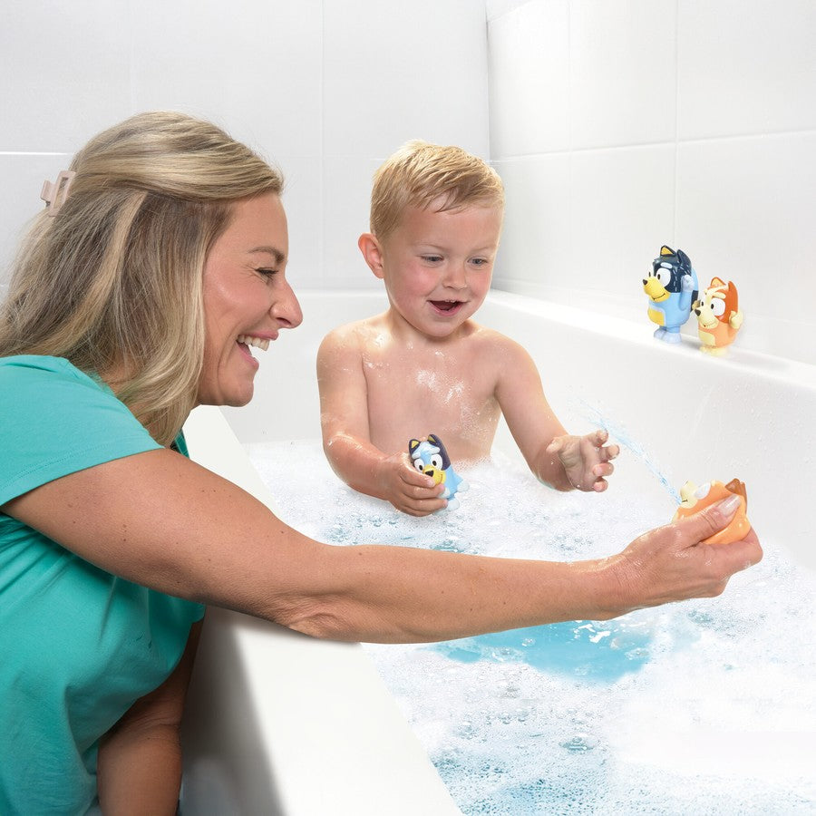 Each character is designed for little hands. Squeeze them underwater to fill them up, then give another little squeeze to see them squirt water, bringing giggles and fun to every bath! The Bluey Family Bath Squirters helps toddlers build water confidence, develop motor skills and hand-eye coordination. It encourages creative play as little ones re-enact favourite scenes or create new adventures with Bluey and her family.