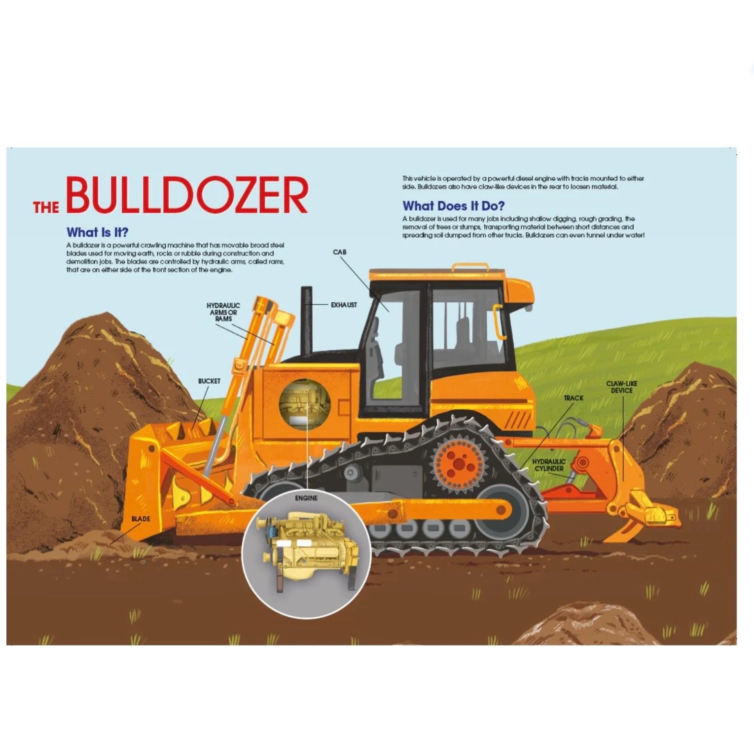 Discover the fascinating internal workings of trucks and diggers with the detailed illustrations inside this amazing book of vehicles.