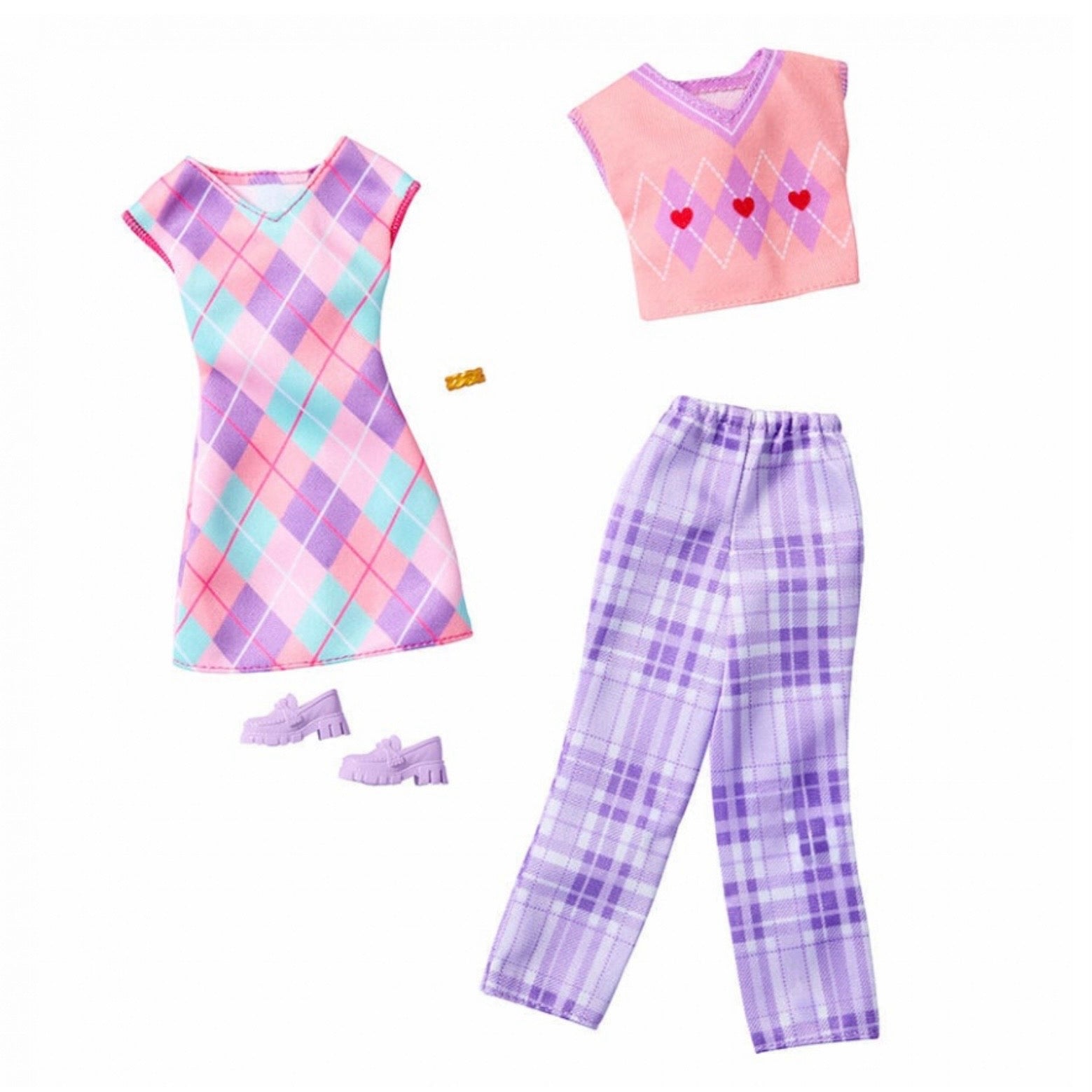 Dress Barbie doll for any situation with a wardrobe that can keep up! With doll clothes and accessories for two complete outfits in one fashion pack, these Barbie clothing sets offer double the styling fun (doll not included). Mix and match within the set and with other fashions in the line to create different looks and explore style. Universal fit designed to fit most Barbie dolls.