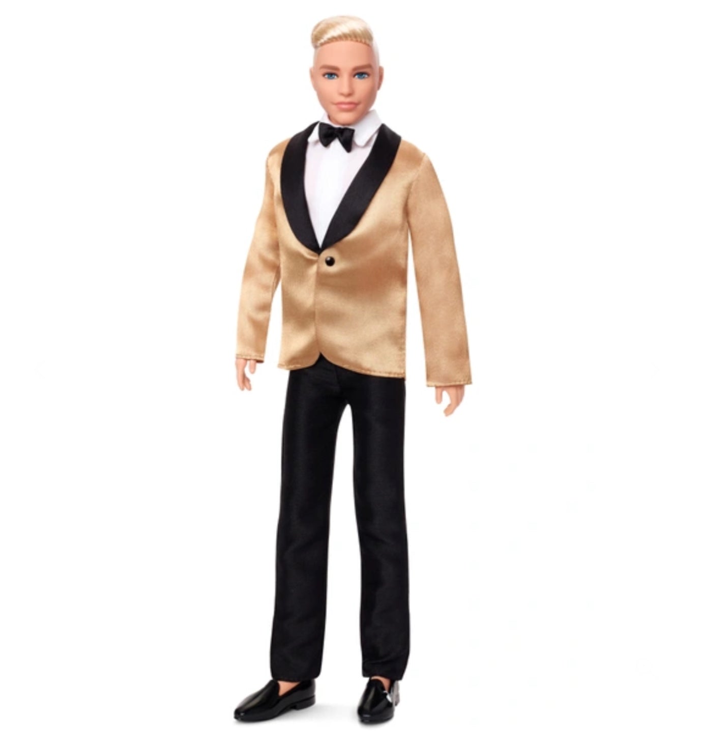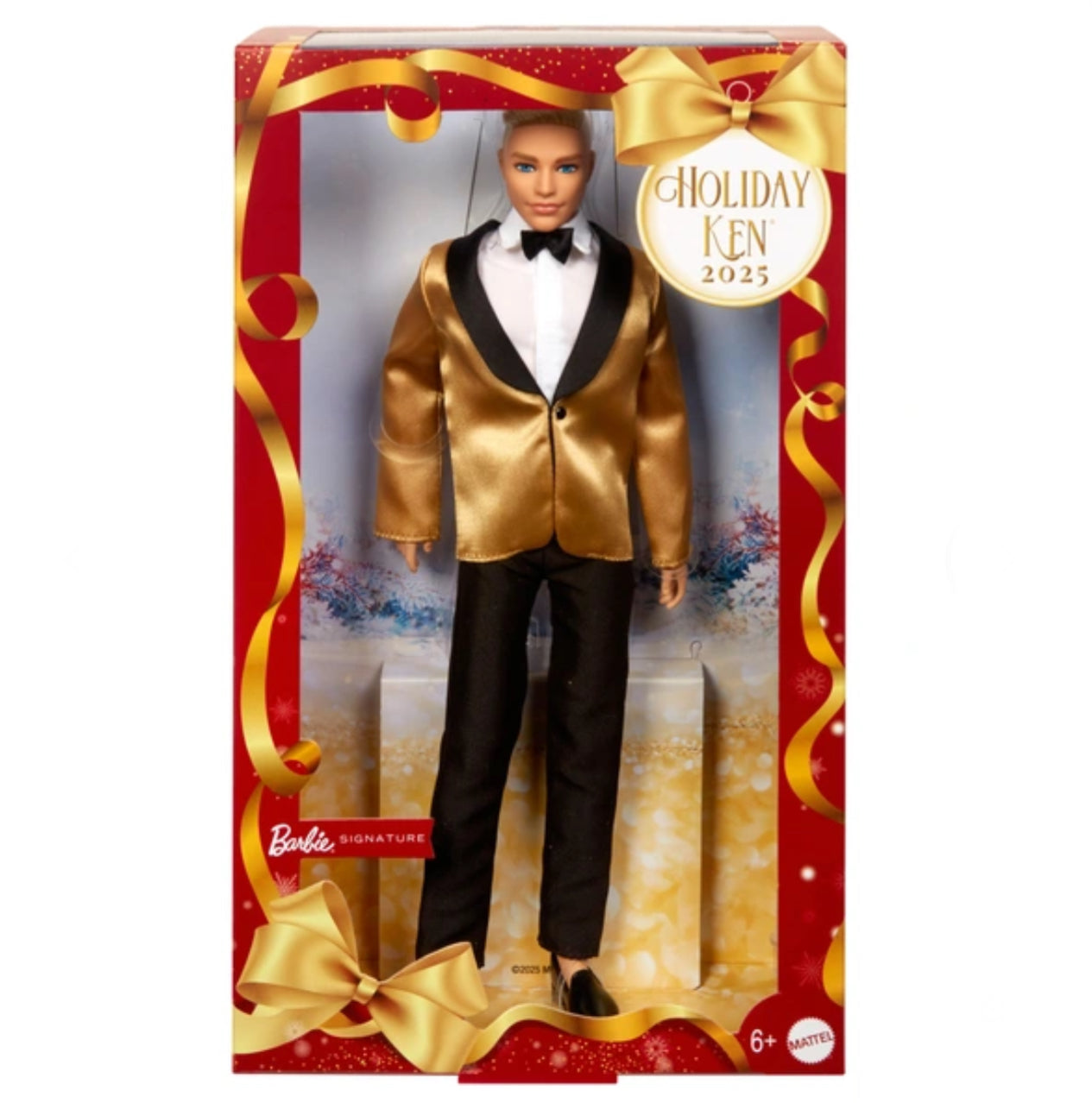 Celebrate the season in style with the Barbie Signature 2025 Holiday Ken doll, a dazzling addition to any Barbie collection. This limited-edition collector doll is dressed to impress in a luxurious full-suit ensemble, featuring a golden satin jacket, white shirt, classic black trousers, polished black shoes, and a sleek bow tie for extra festive flair.