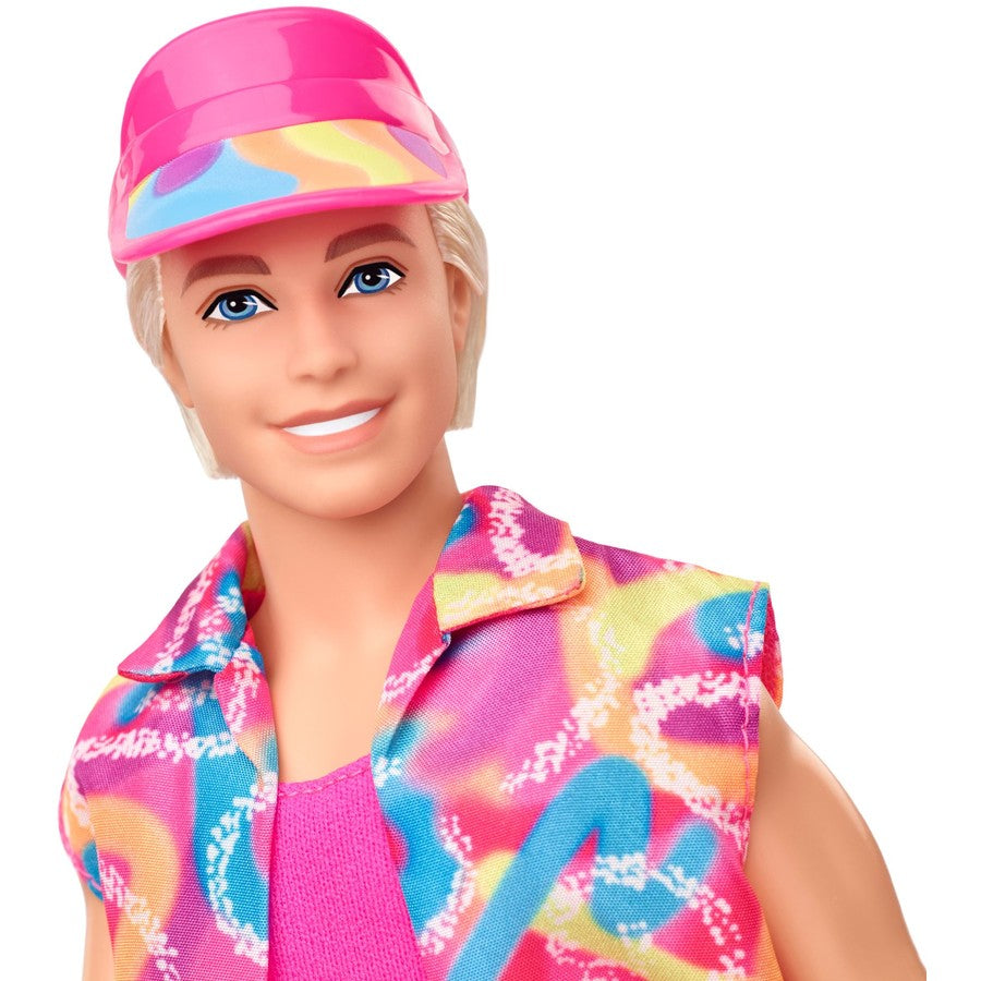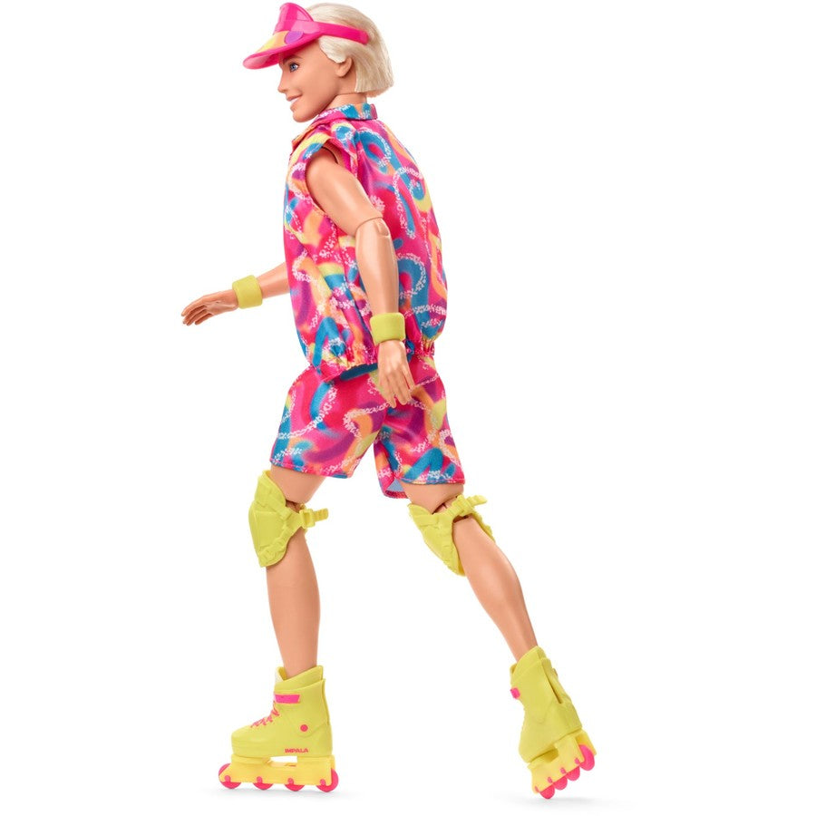 Take home a part of Barbie The Movie with this collector Ken doll! He wears a sporty neon outfit that recreates his character’s iconic skating look in the feature film. Ken doll looks like he’s skated right off the big screen in his eye-catching ensemble! He rocks signature Barbie style in an electric pink tee. His sleeveless jacket, athletic shorts, and matching visor all feature a bright, retro-inspired print.