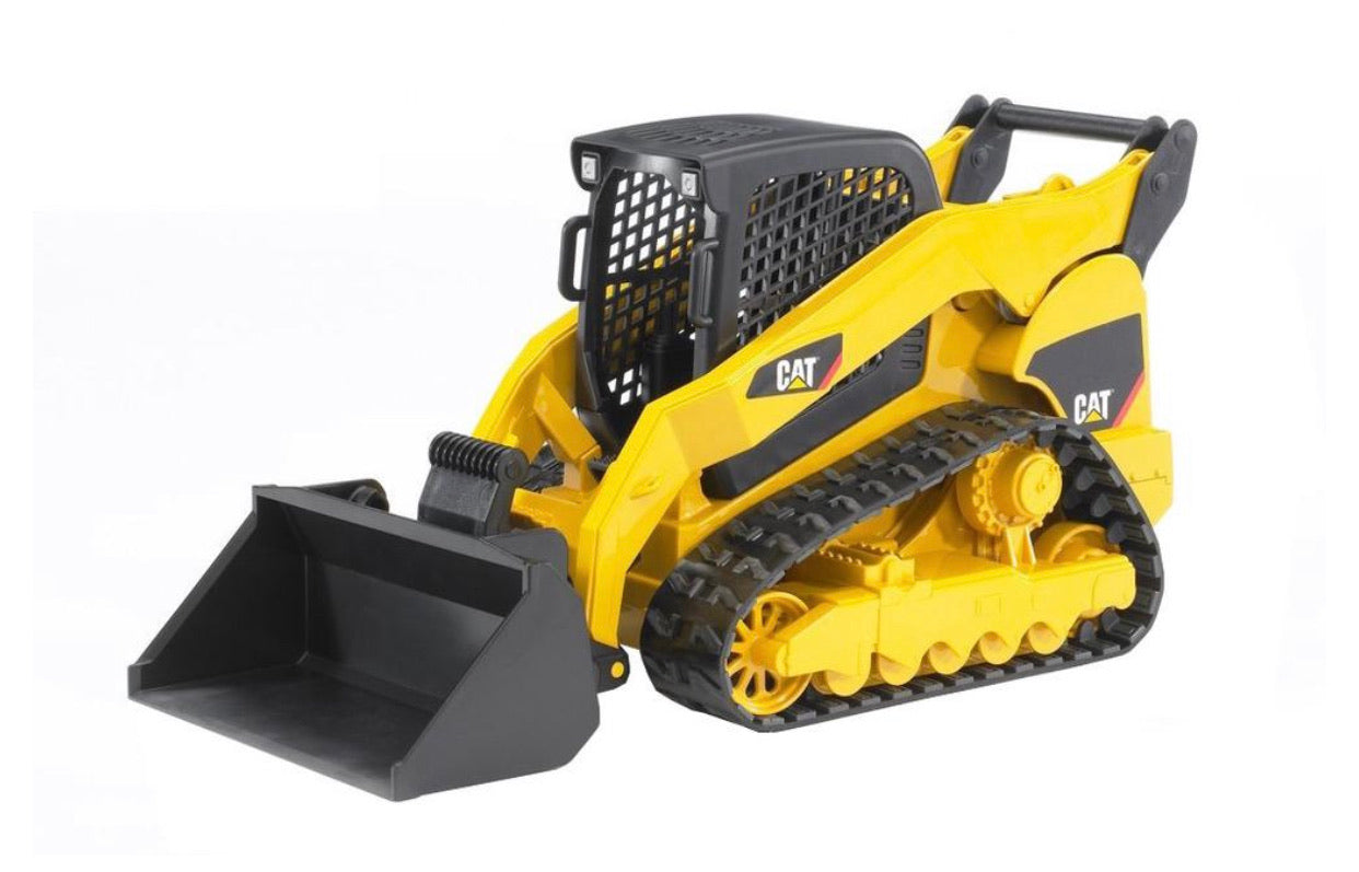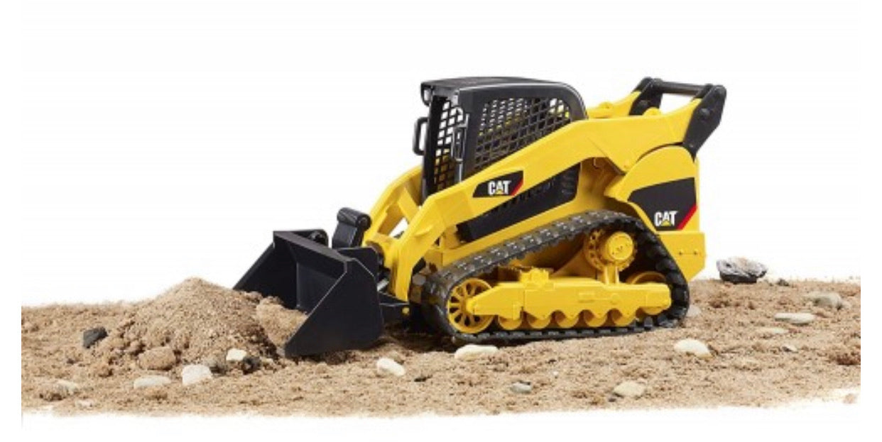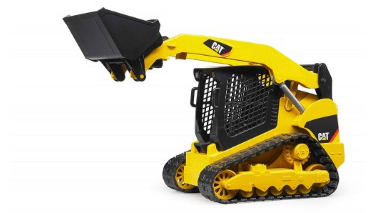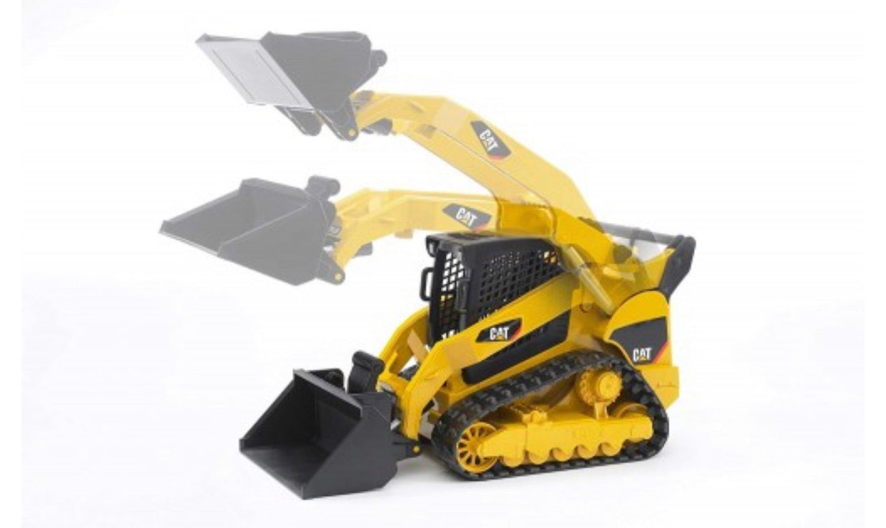 he movable arm of the Cat® Compact track loader can be locked in many positions and reach particularly high thanks to its special construction. An adaptor for at-tachments already used on several BRUDER vehicles allows the Cat® Compact track loader and its attached equipment to master all types of work in no time.