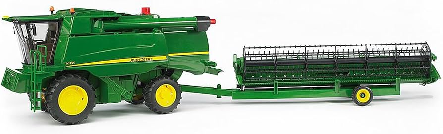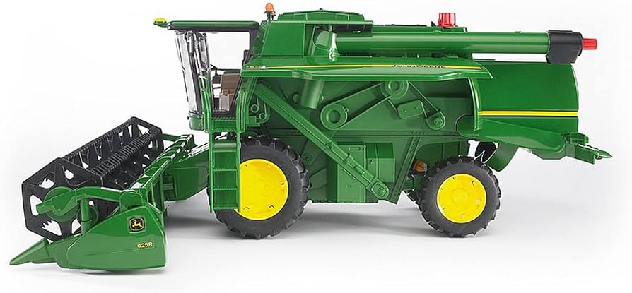 John Deere, the world's leading tractor manufacturer, also makes combine harvesters. The T series of these harvesters underwent new development and now includes as its top model in terms of performance and equipment the model T 670i. The same holds true for its entirely new BRUDER model which represents a milestone in the history of toys that meet the most challenging requirements. While the highly efficient technology incorporated into these impressive machines, for the most part, operates unseen by the casual observer, children are always fascinated with the spectacle created by combine harvesters when harvesting crops. With our new John Deere combine harvester BRUDER has managed to make this technology come to life and turn it into a tangible experience. Our little farmers will be thrilled to learn how easy this big harvester steers and how exciting it is to be able to drain the grain tank via the drain tube. Its other realistic details including the opening cabin door, numerous opening covers, a detachable cutting unit with pendulum suspension and level compensation ? to name only a few ? are sure to make this toy enormously fun to use.