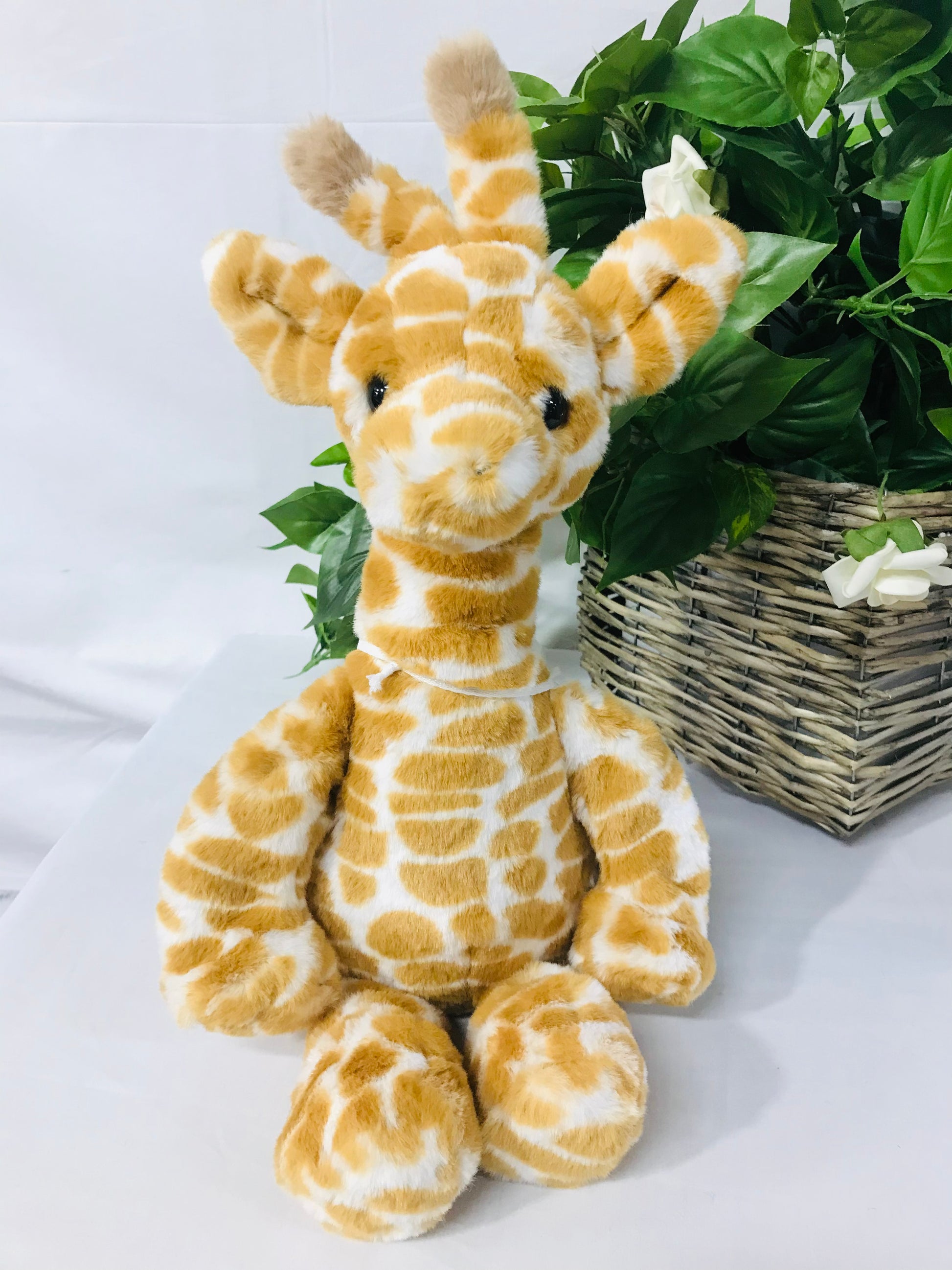 Your tot will find a forever friend in Gilbert, our irresistibly cute giraffe from our brand-new Bear & Me range. Bringing everyone’s favourite safari animal to life, your child's new long-necked friend has super-soft white with ginger patterned fur, a friendly face and two horns between the ears. Imaginative play and peaceful naps are easy with this gorgeously soft giraffe. Safety is our top priority, and that's why Gilbert is non-jointed and machine washable, making him suitable from birth.