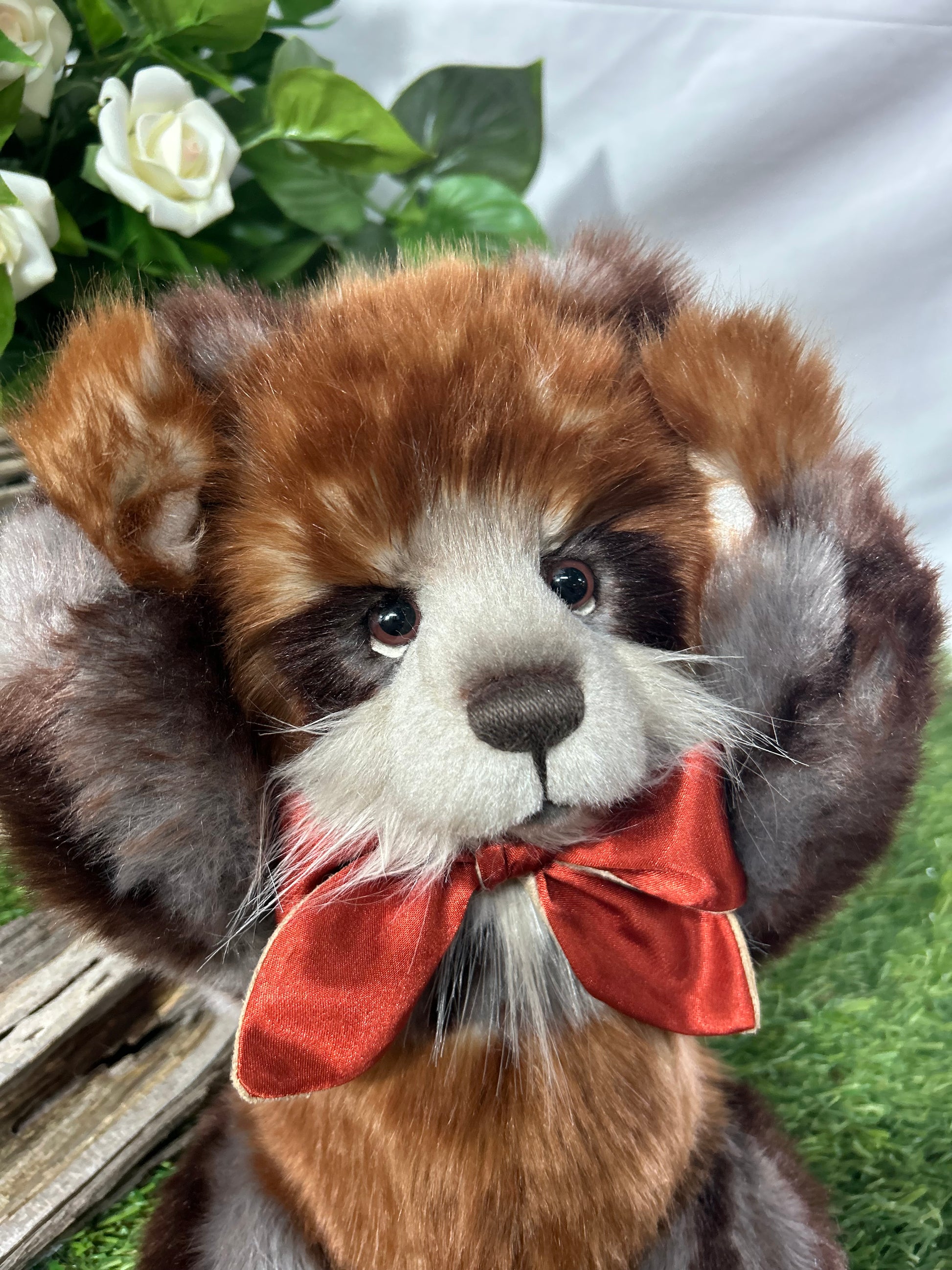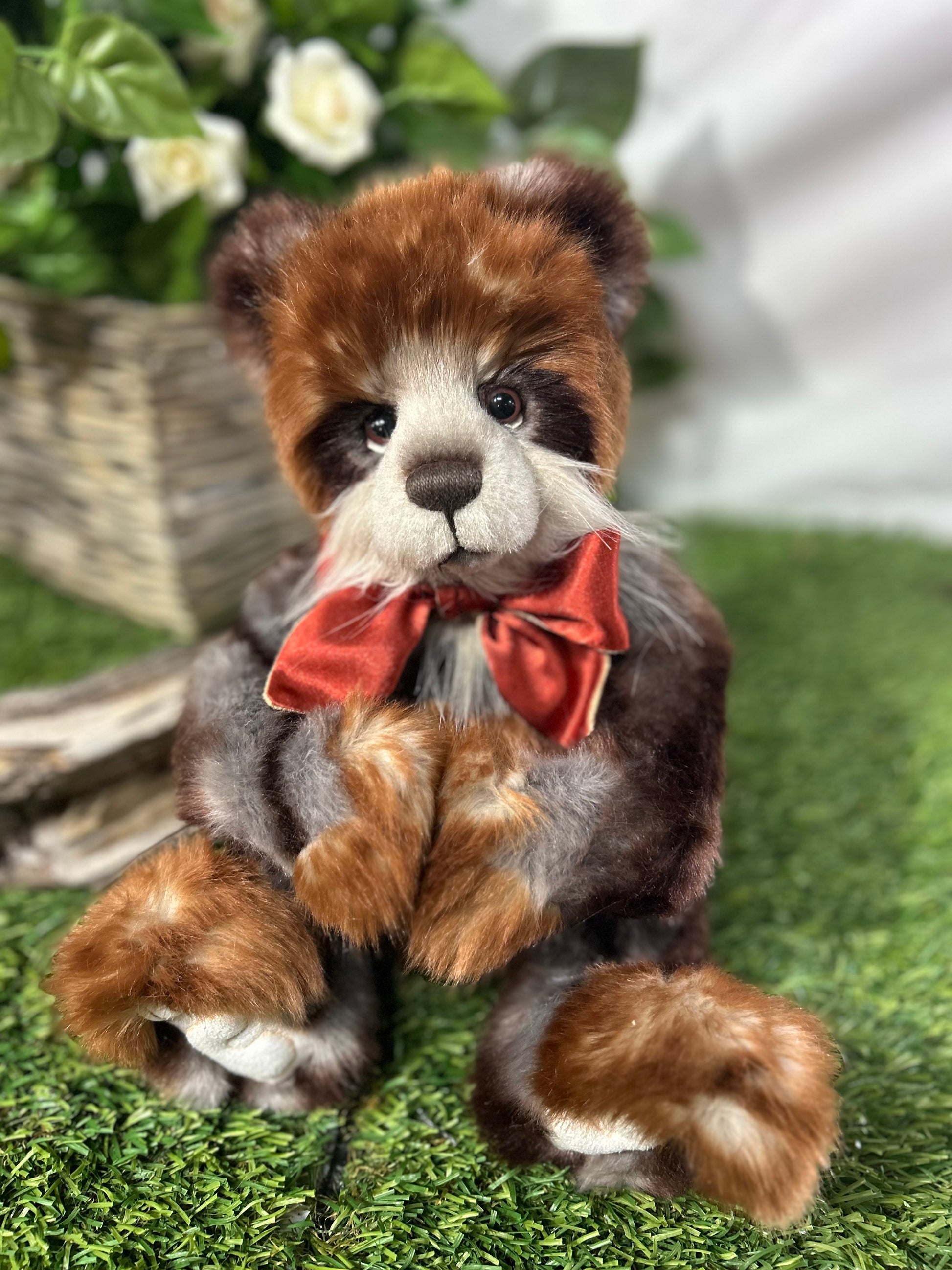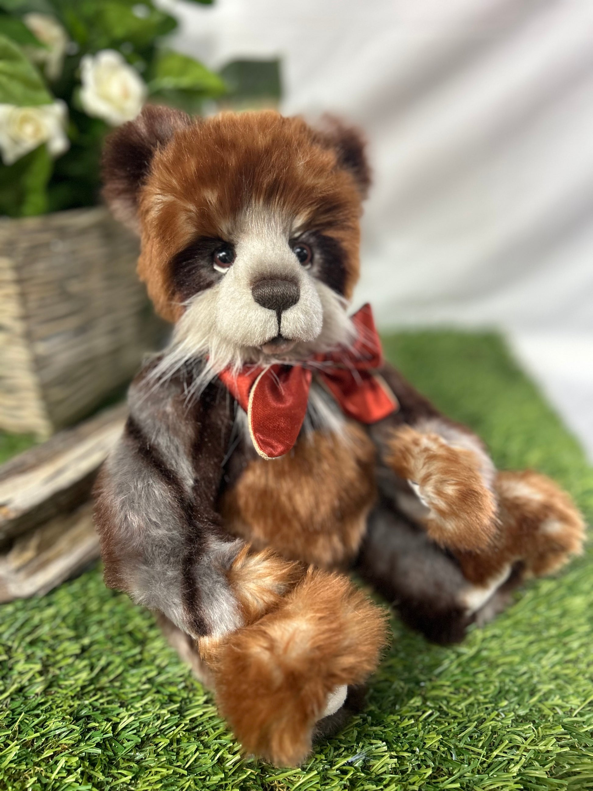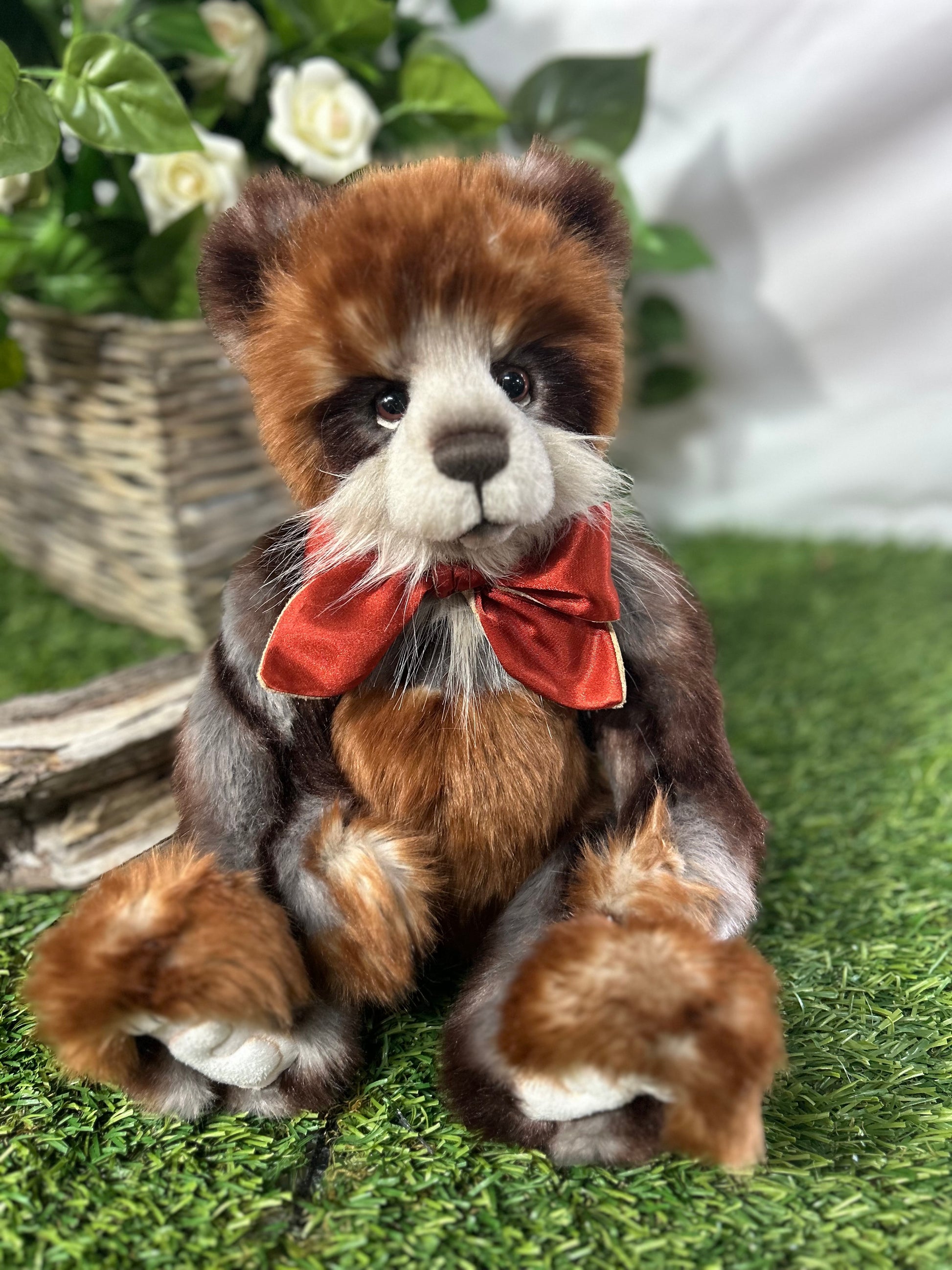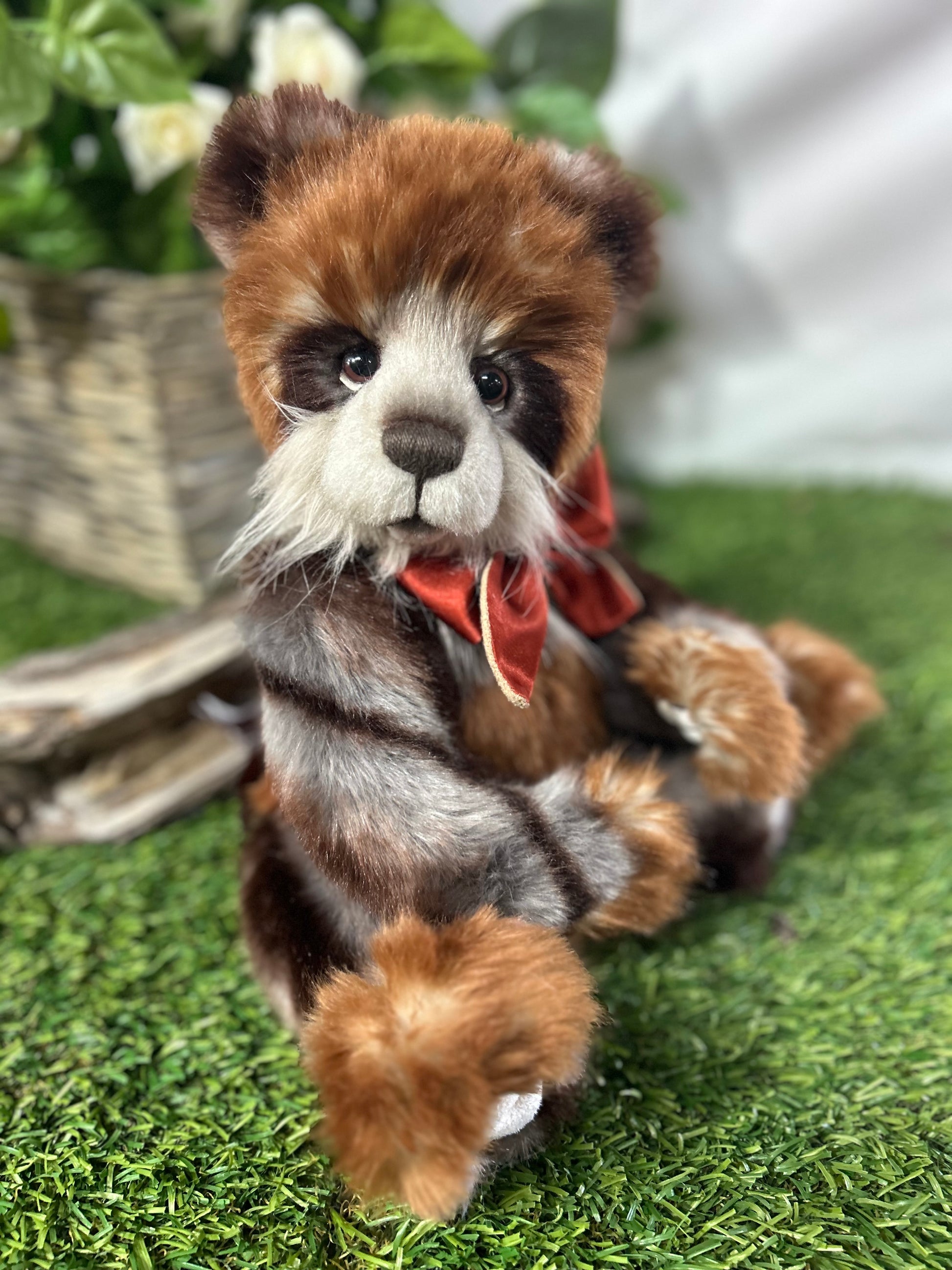 Gisburn is part of our 2024 Secret Collection! This paw-fect panda is crafted from luxuriously soft medium-pile plush in shades of dark orange and light grey. Gisburn has sculpted paw pads with hand-embroidered tickly toe detailing, the 'Who Me?' look which we know you love and is complete with a large ribbon around his neck.