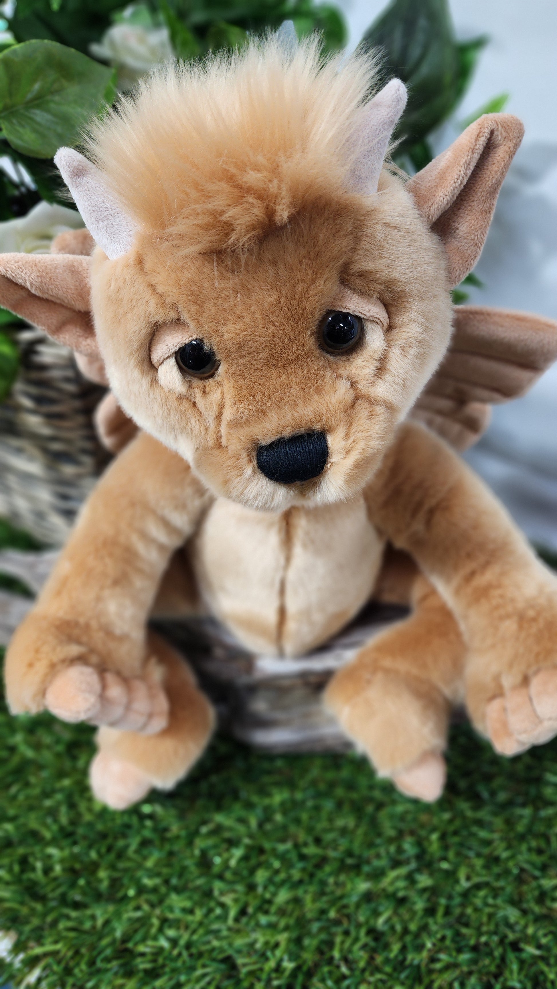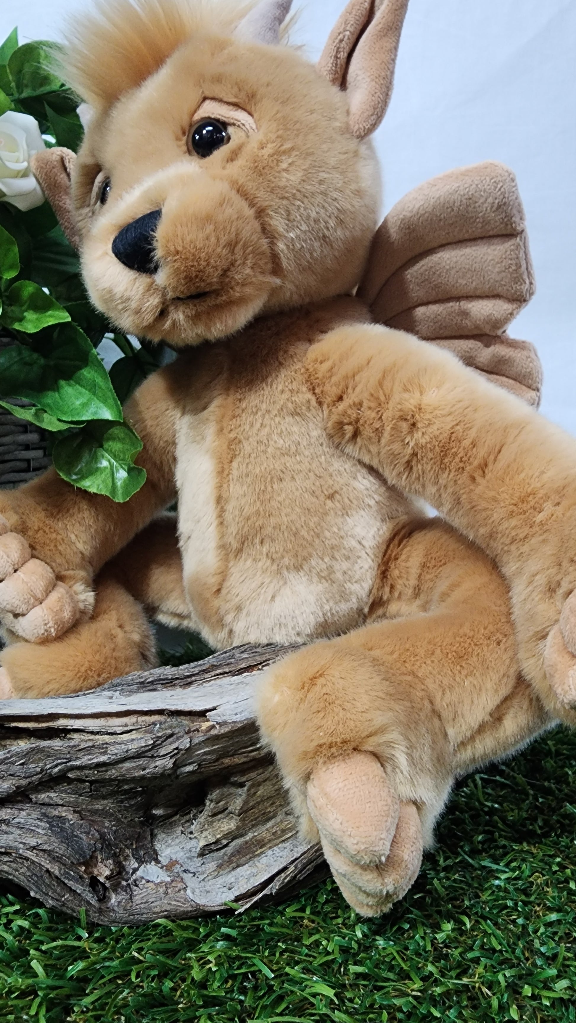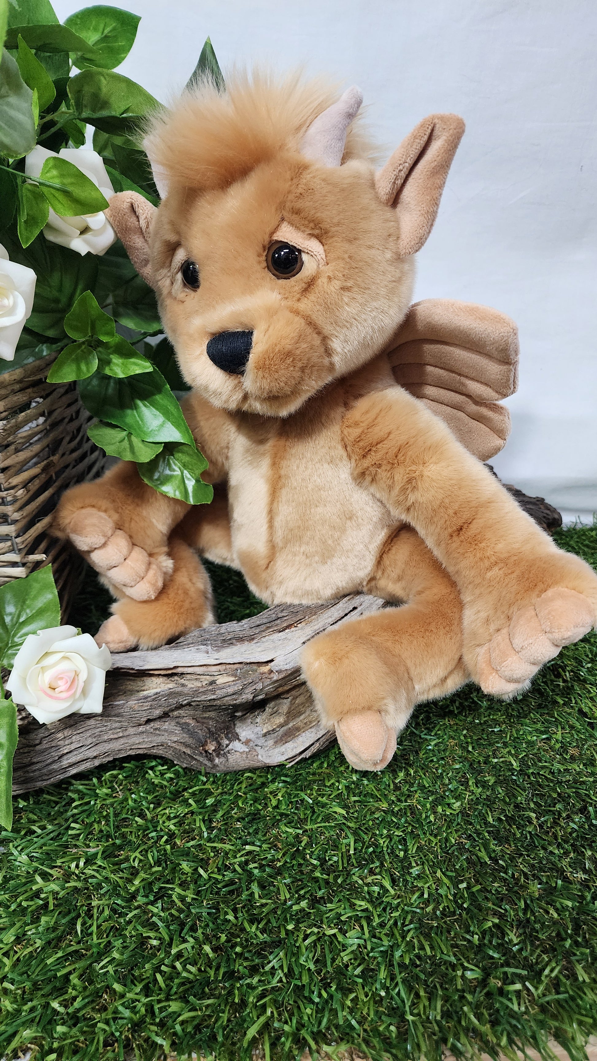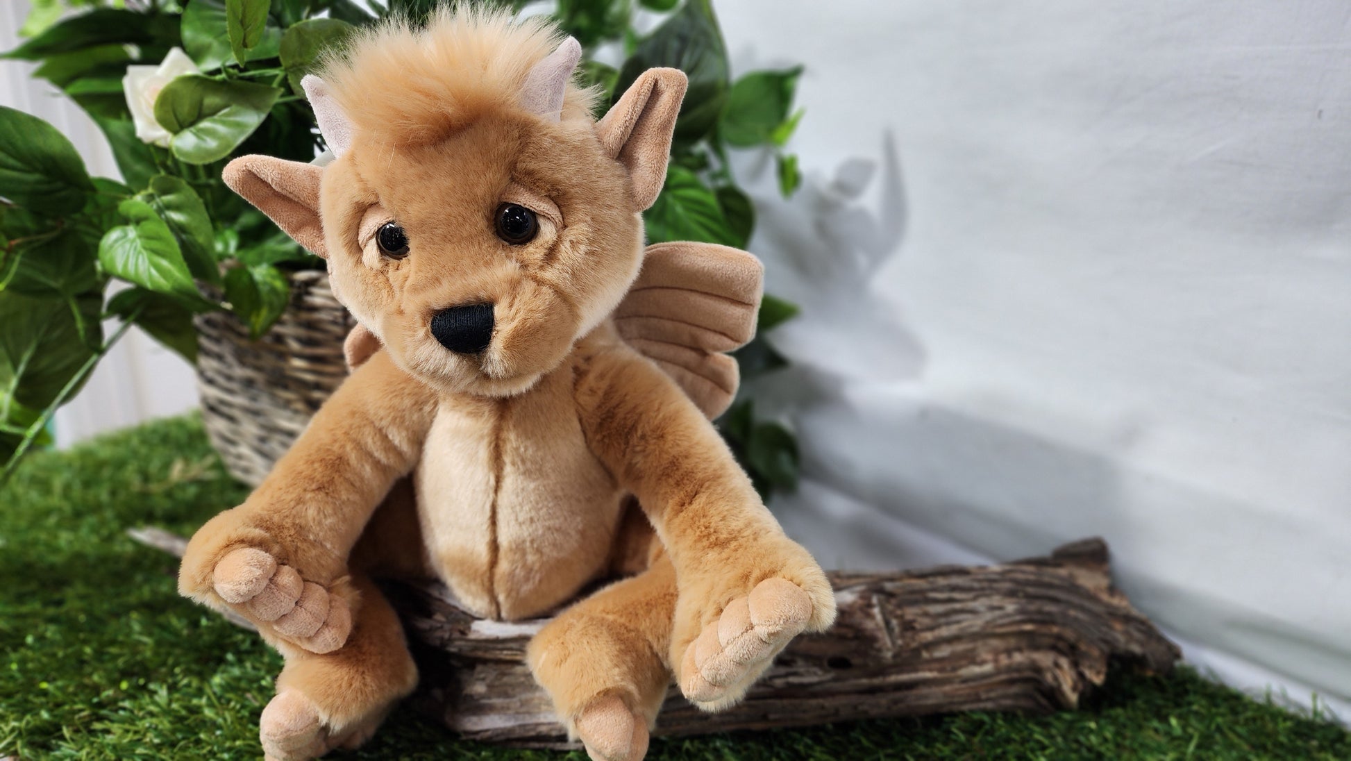 Meet Bartizan the Gargoyle! He is 10 inches tall and is made from light brown plush!