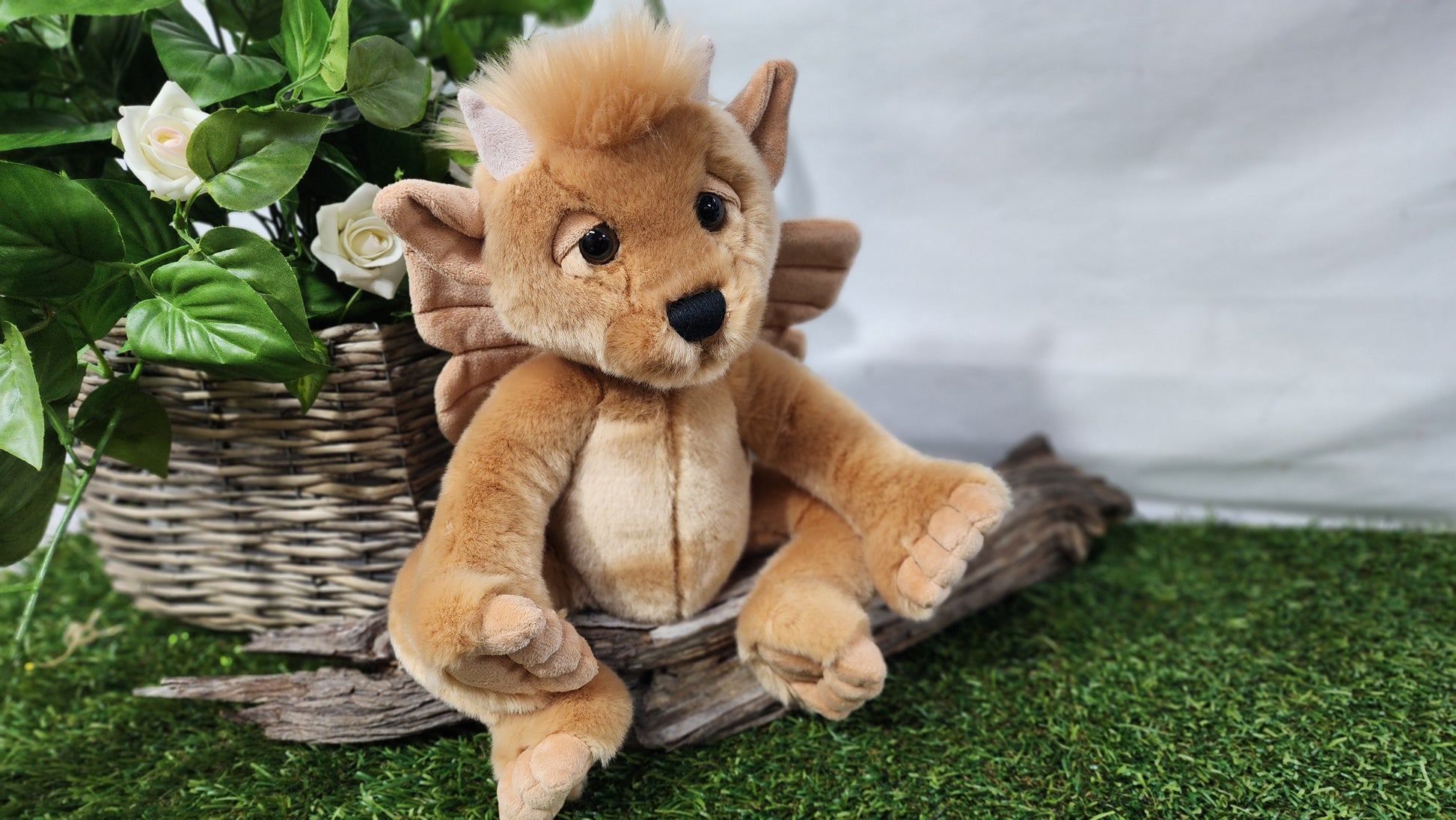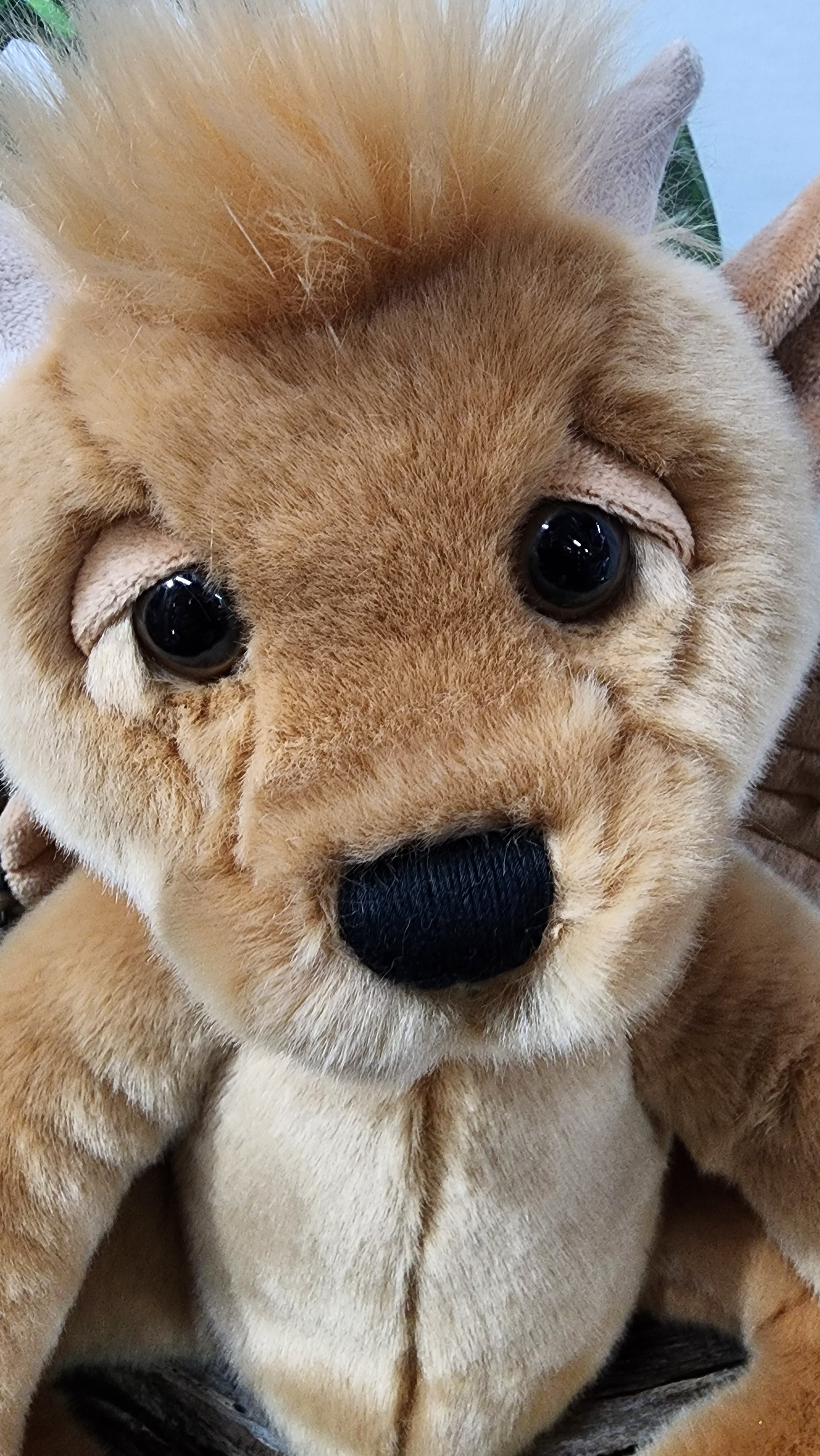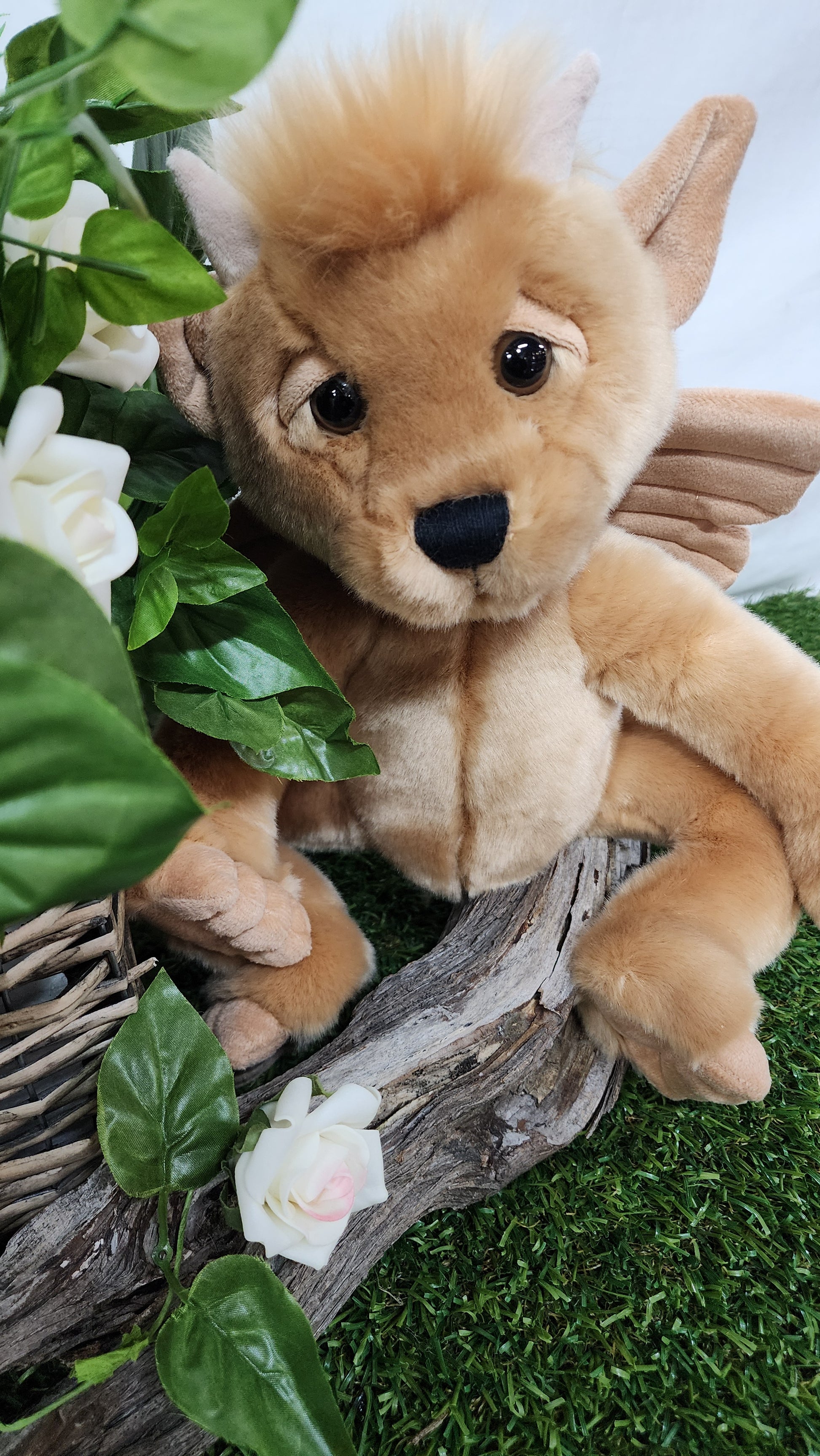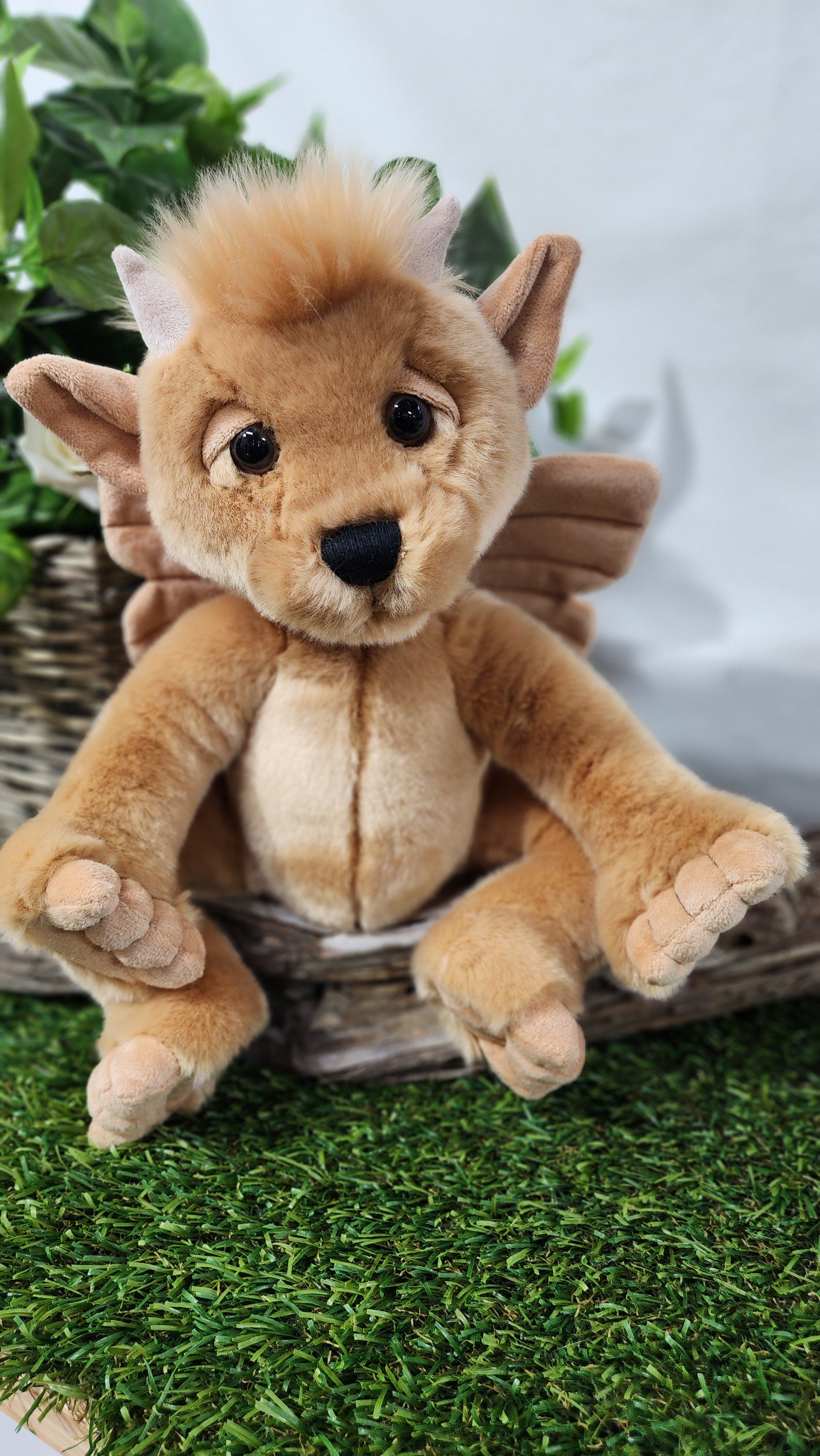 Meet Bartizan the Gargoyle! He is 10 inches tall and is made from light brown plush!