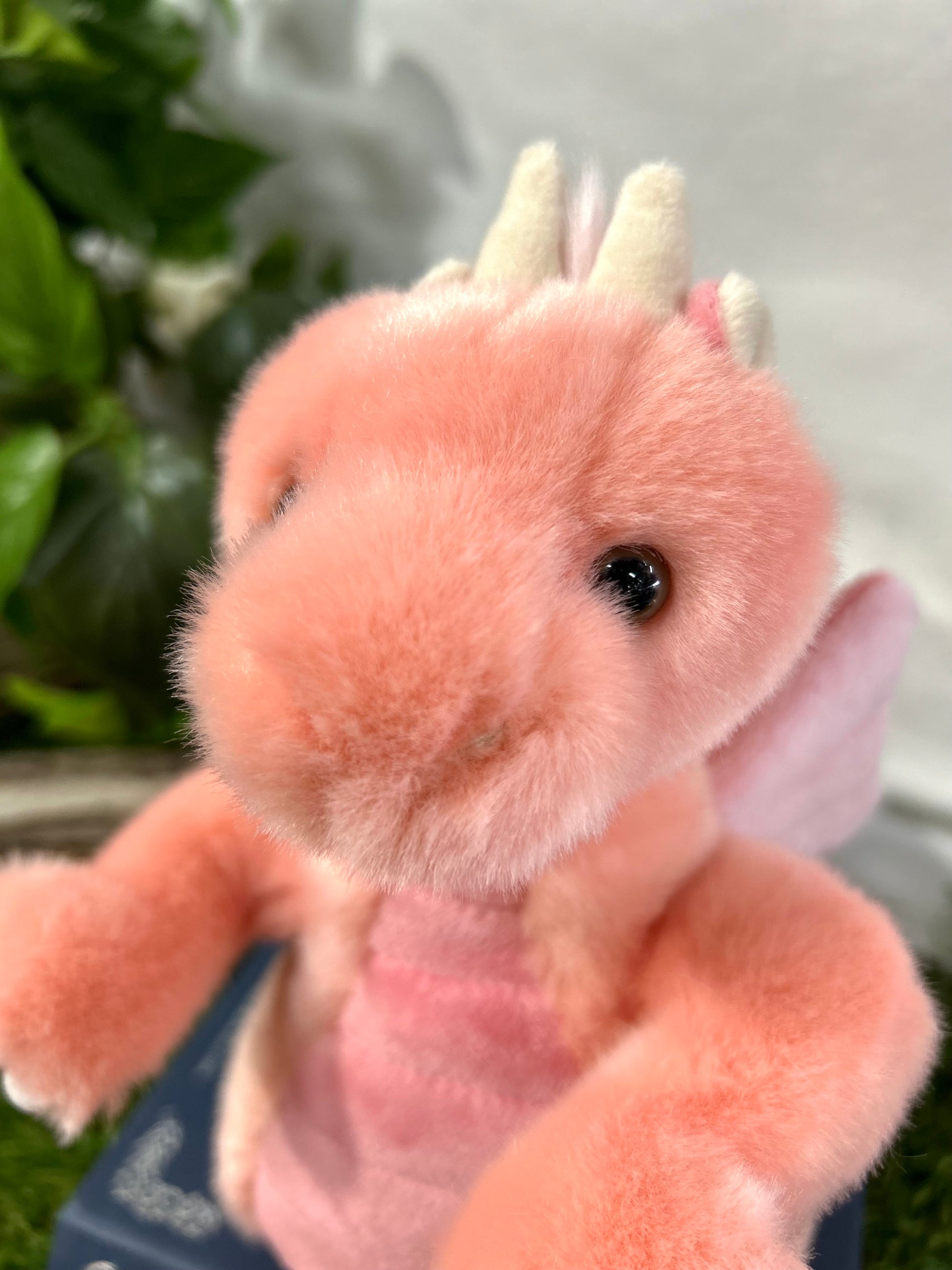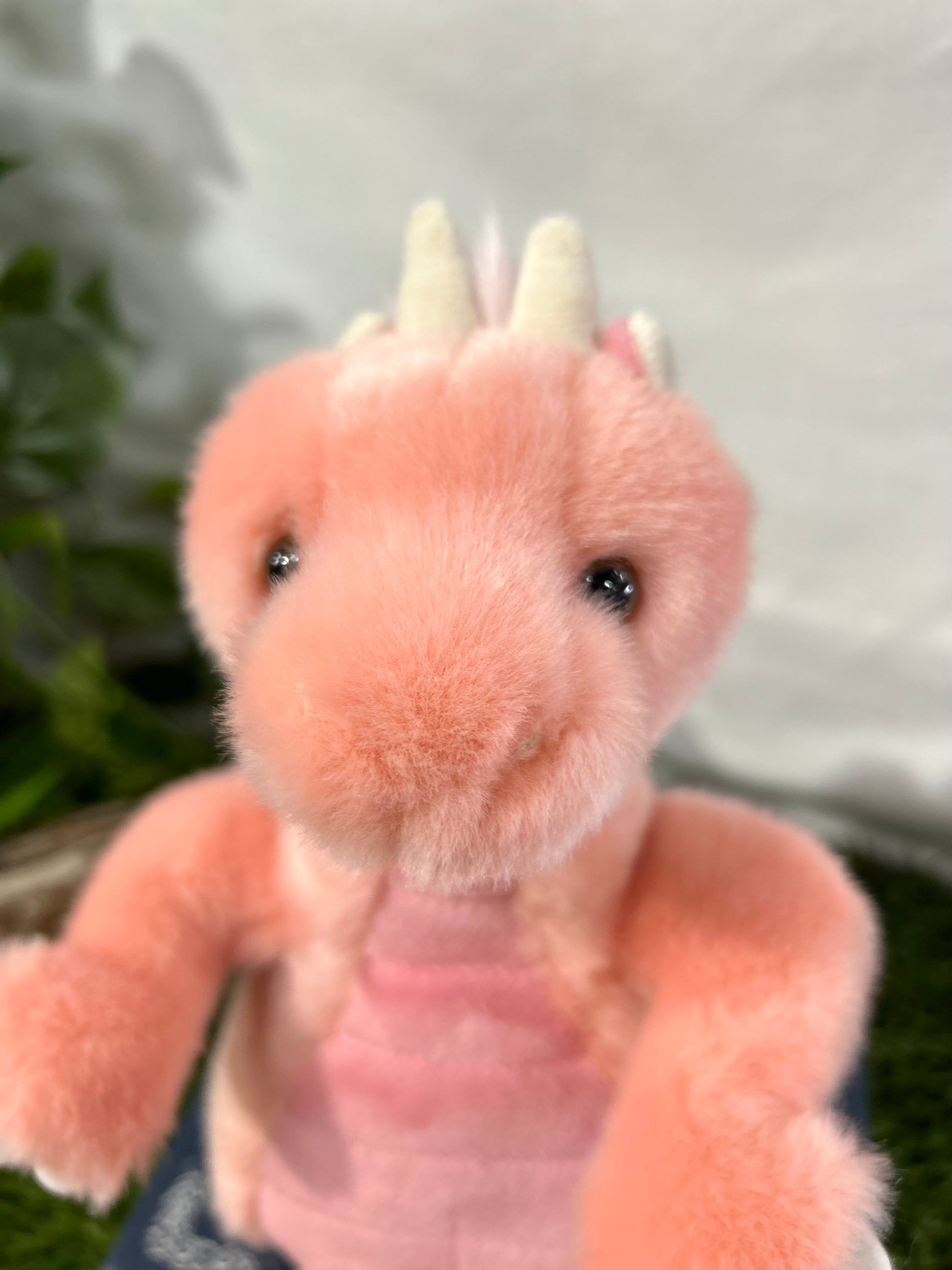Hearts is an enchanting dragon from the 2025 Bearhouse collection by Charlie Bears. Part of a whimsical dragon family inspired by playing cards, this non-jointed and machine washable companion is made from soft plush in gentle pink hues. With delicate fur accents and adorable wings, Hearts is hard to resist. Hearts has cream claws, whimsical horns, distinctive spine detailing, a plump, cuddly body and sweet facial features that bring character to this magical creature.