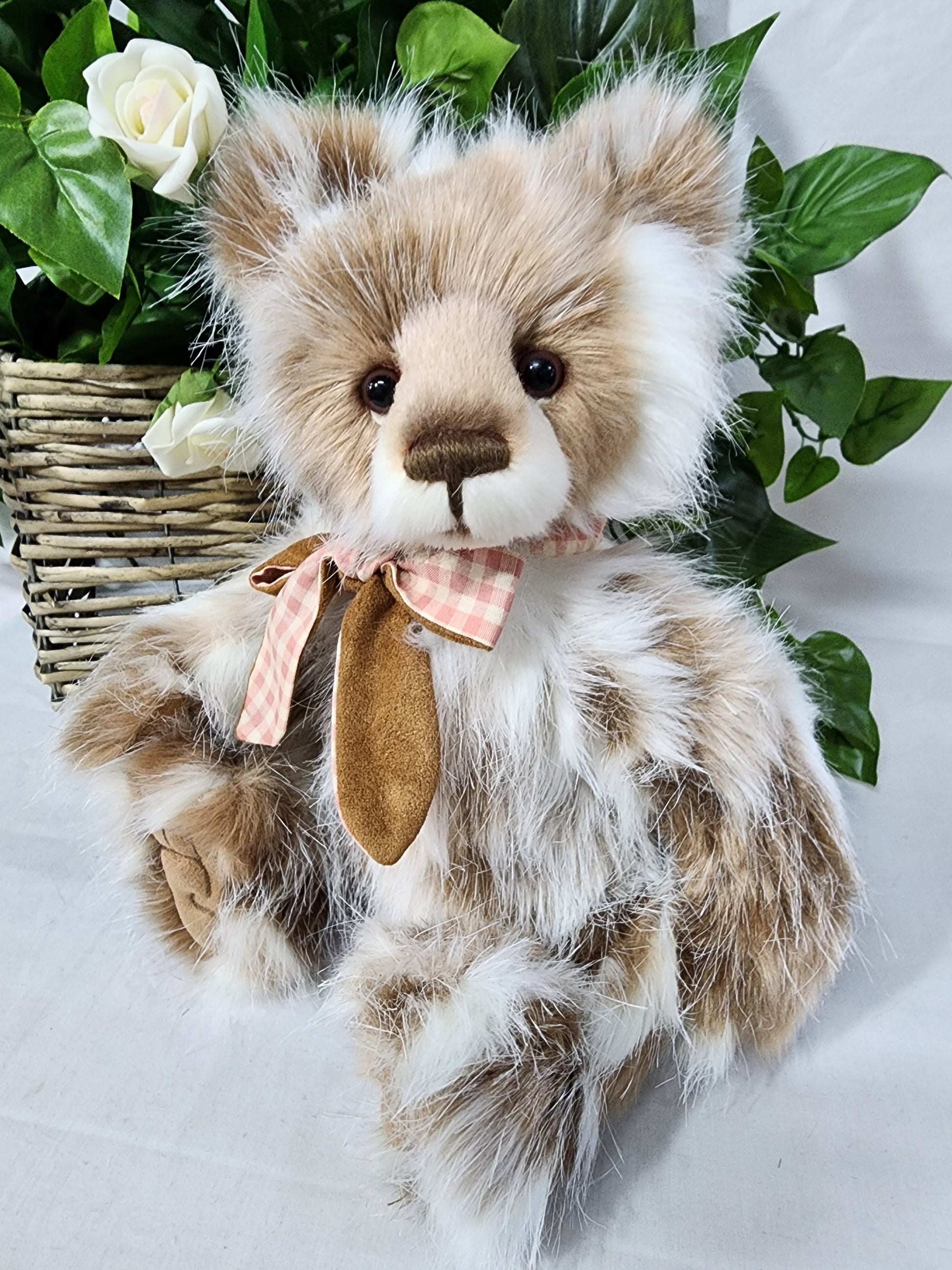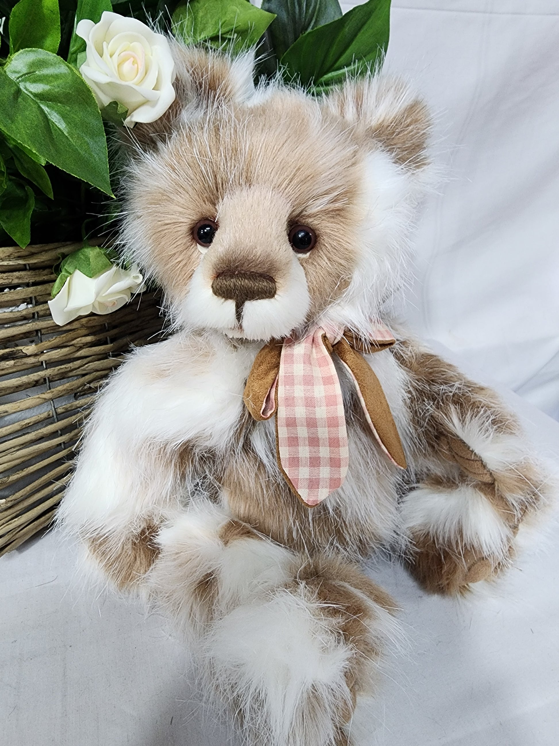 Look at those eyes...how can you resist this adorable bear? Kieker & Ashdown have the most adoptable eyes in this collection. Earthy tones blended with white and finished with a chequered bow, I know Kielder will be joining your hug.