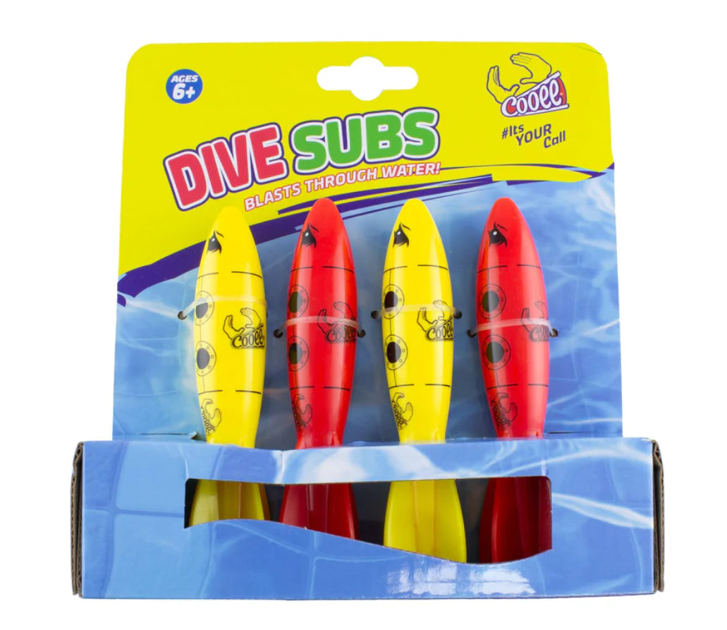 Dive Subs, simply just place or throw them in the water and watch as they shoot to the the bottom of the pool! With vibrant colors and sleek designs, Dive Subs are sure to add a splash of excitement to your pool fun.