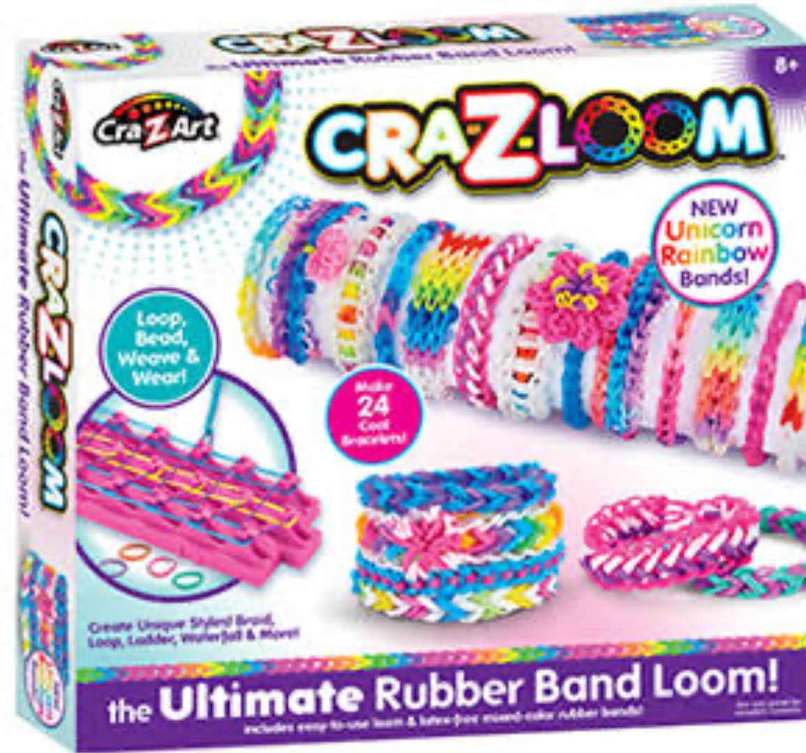 Includes 600 latex free mixed coloured bands and a weaving loom