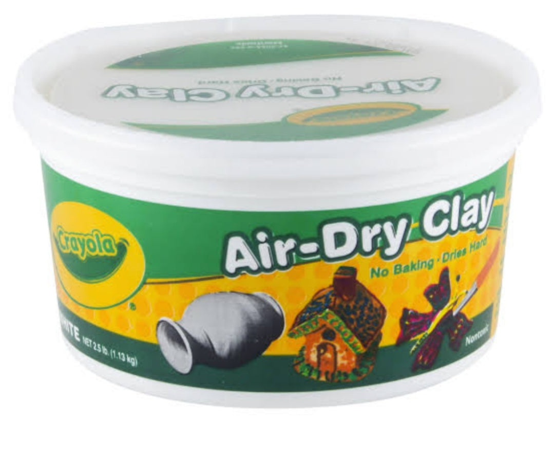 Crayola Air-Dry Clay is a fine, natural earth clay which air-dries to a hard solid. Use it to make clay sculptures, decorative items or plaques. No baking or firing needed.
