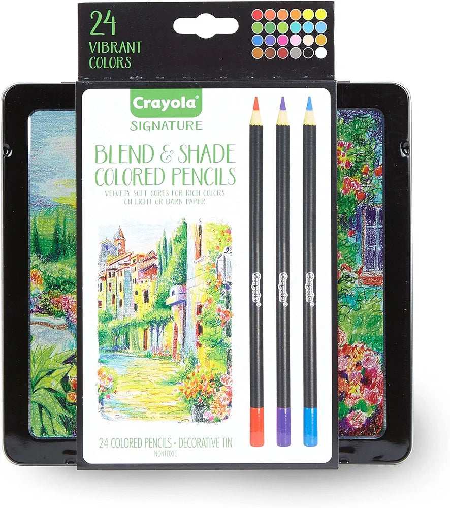 Crayola Signature Blend & Shade Coloured Pencils, 24 Assorted Colours, Professional Quality, Premium Embossed Storage Tin, Perfect for detailed illustrations or shading and blending art work