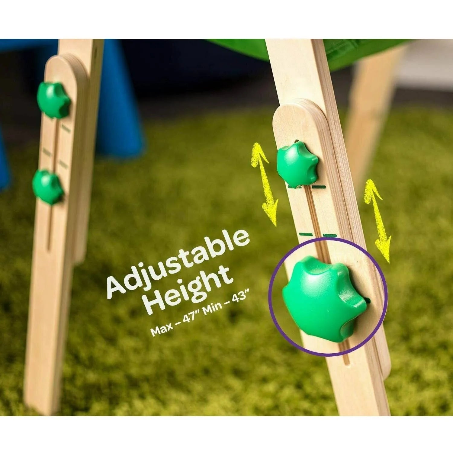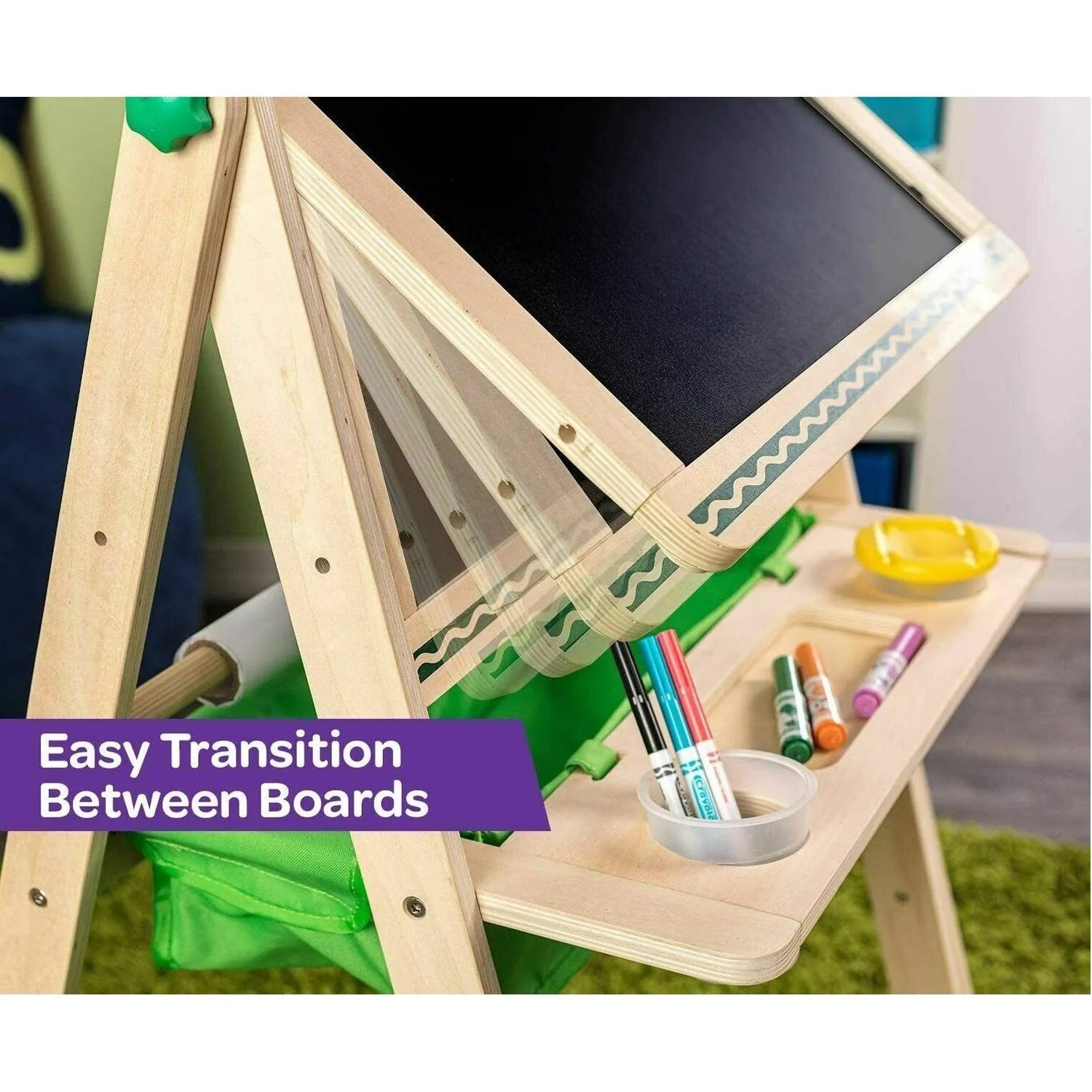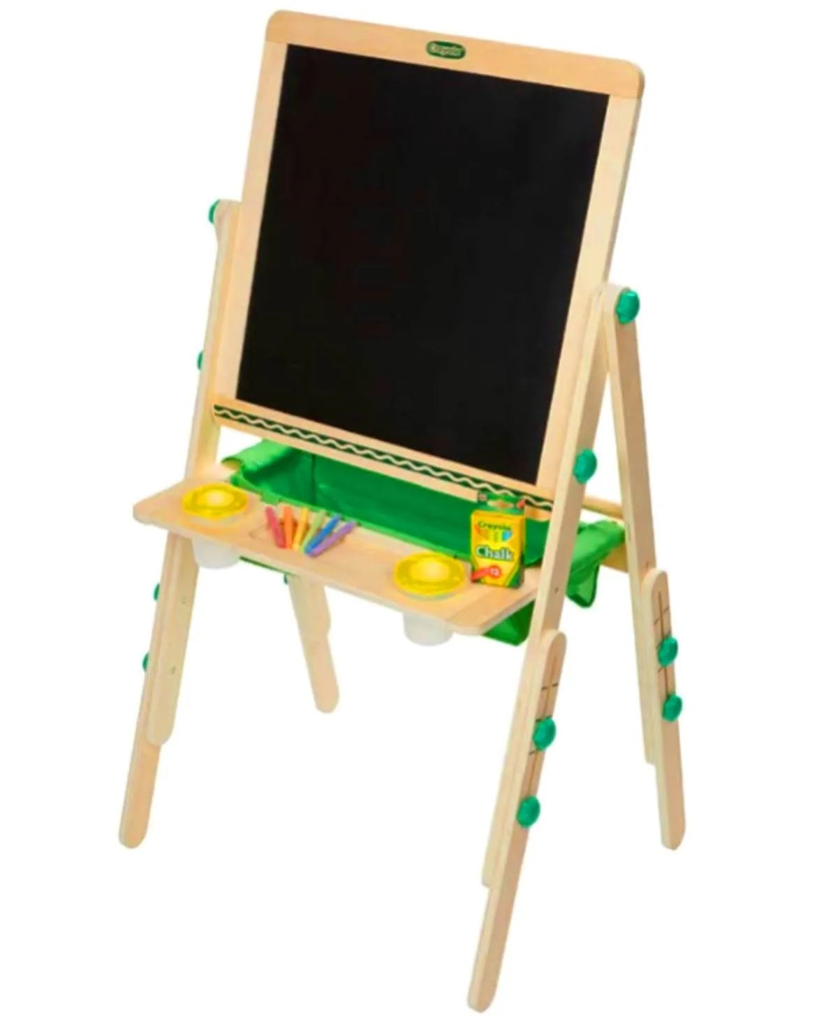 Crayola kid’s deluxe wooden art easels is the perfect tool to help kids create and Display their colorful designs. This multifaceted easel is dual sided, with both dry erase and chalkboard surfaces. A handy rollout dispenser lets kids create on paper as well. Storage on the shelf and in the pots helps keep supplies organized. The adjustable height allows the easel to grow as the kids do. Includes 1 Wooden Height-Adjustable Easel (31.3 x 21.7 x 4.2 inches), 1 Paper Roll (15in x 78in), 2 Paint Pots, 3 Pip Squeaks Broad Line Washable Markers, 12 Count Colored Chalk, 3 Washable Dry Erase Fine Line Markers, 1 Eraser, and 1 Fabric Bag. Recommended for ages 3 years and up.