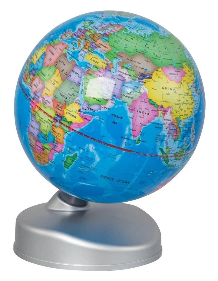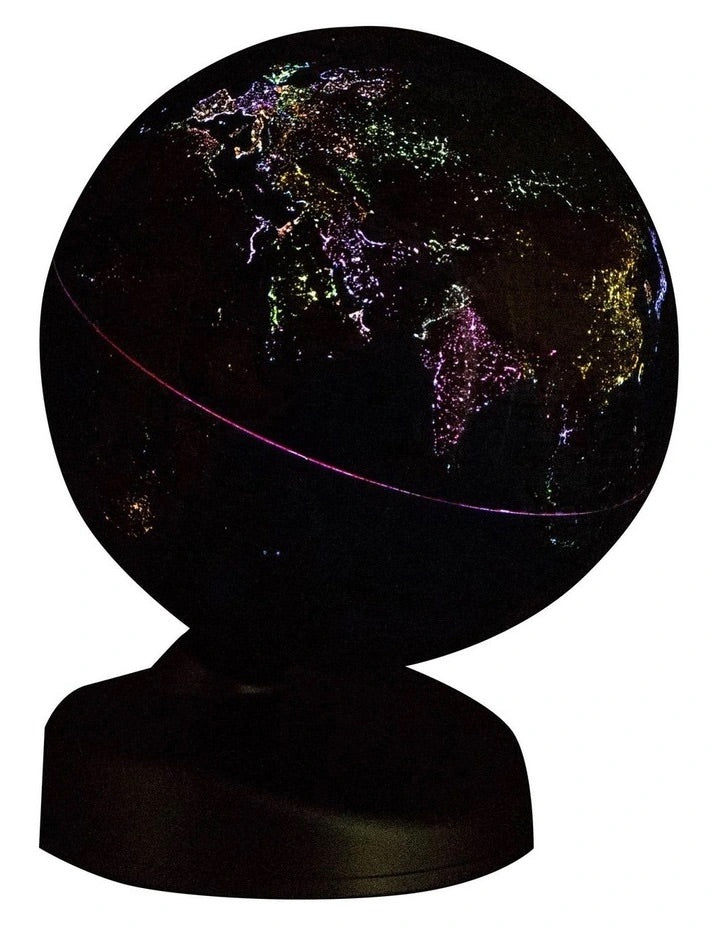 This 22.8cm daylight Earth globe from Discovery clearly shows political boundaries, major cities and natural features, such as lakes and rivers. When illuminated by the internal light source, the night globe shows key stars and constellations with the Latin and common names.