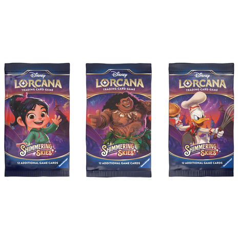 Each Disney Lorcana Booster Pack contains 12 random cards, including 1 foil in every pack. Use booster packs to build and customize your deck with new abilities and characters!
