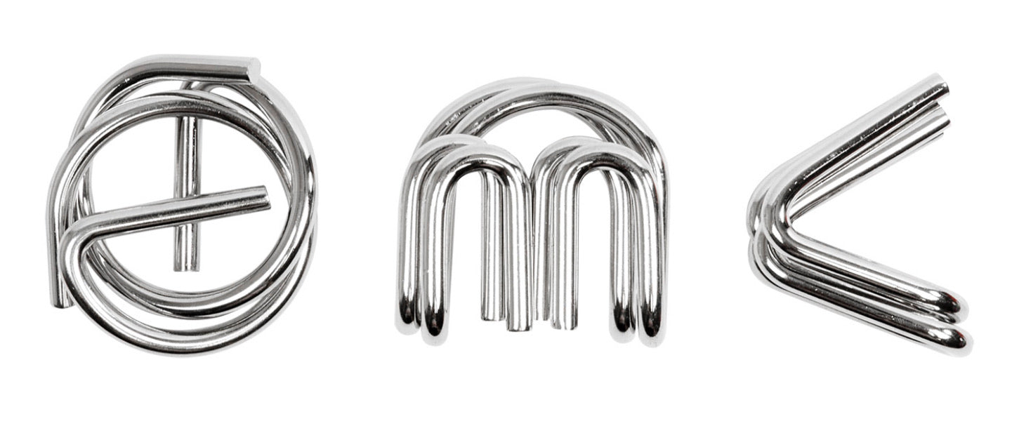 Formed of the symbols of Einstein’s ground-breaking E=mc2 equation, see if you can separate the two pieces of each metal puzzle and then reattach them.