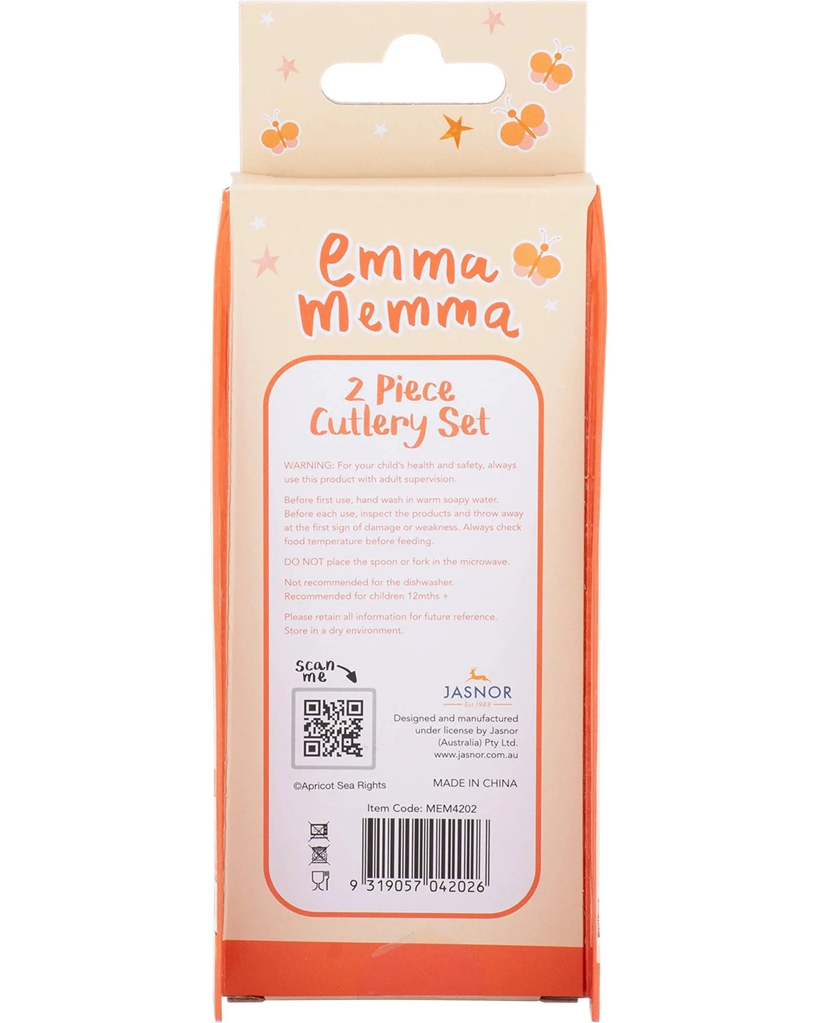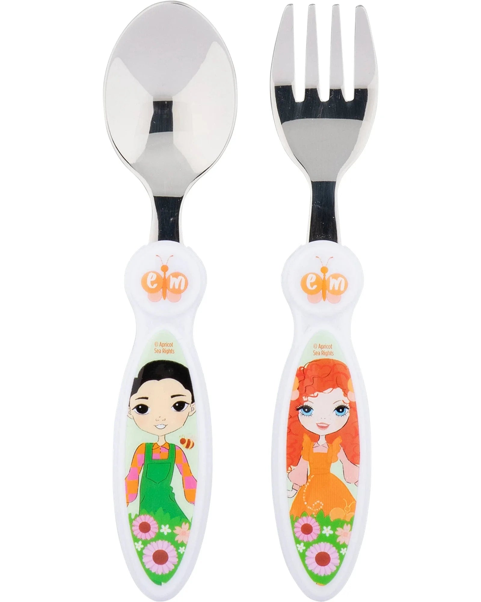 This stainless steel cutlery set includes a fork and spoon adorned with beautiful illustrations of Emma Memma and Elvin Melvin on the handles. Perfect for children who are learning to self-feed, the fork and spoon are the perfect size for little hands to grasp, ideal for helping children develop their hand-to-mouth coordination at mealtimes.