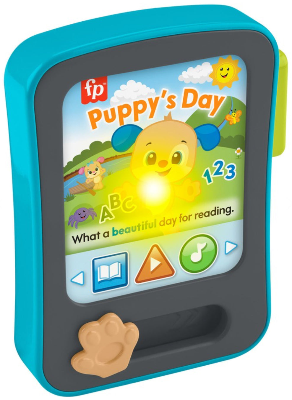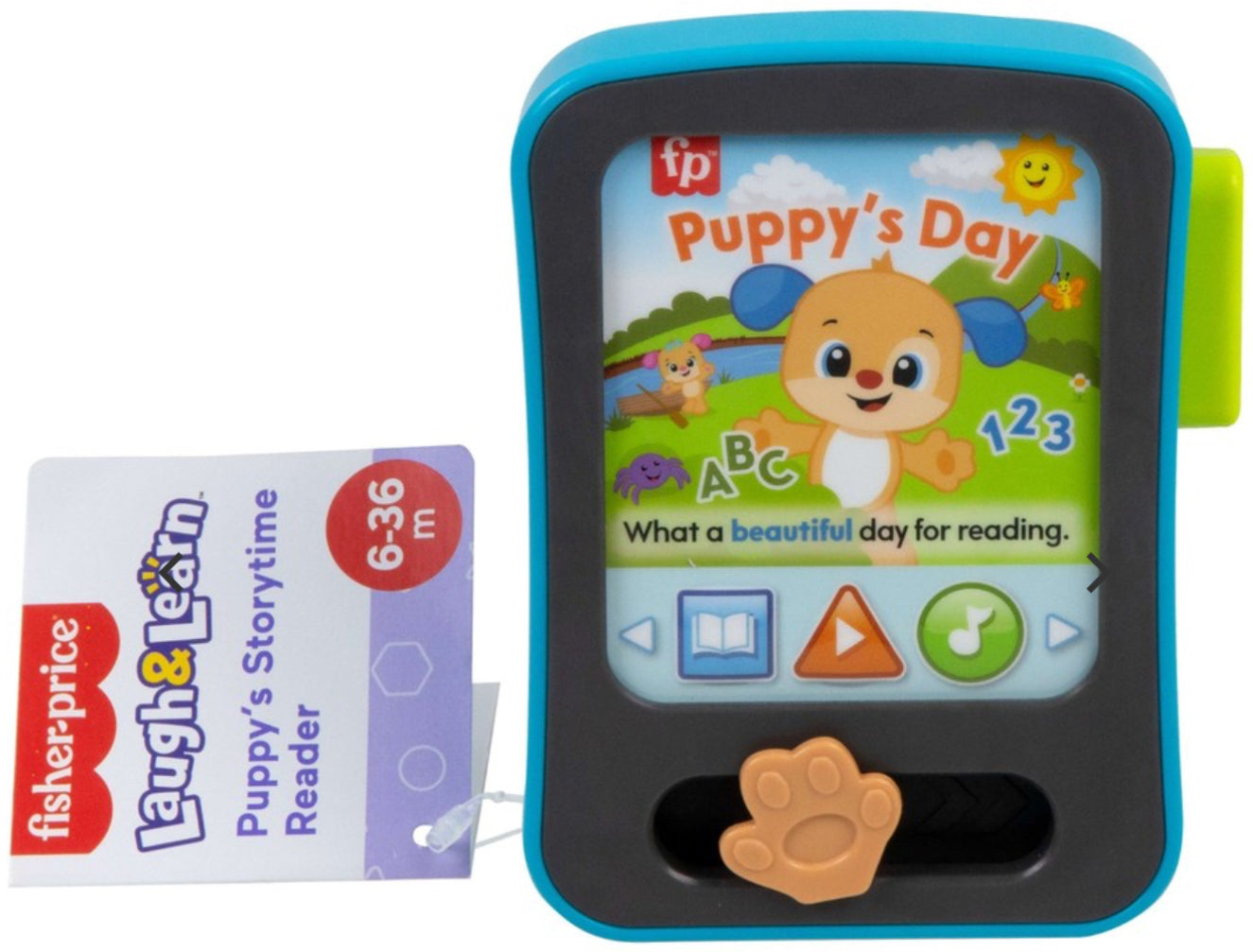 Baby can curl up with their favourite stories with this pretend e-reader electronic learning toy from Fisher-Price. Styled like the grownup version, the Laugh & Learn Puppy’s Storytime Reader has 3 buttons for little ones to press that activate lights, songs and sounds, plus fun busy activities to explore. Featuring 20+ songs and sounds, including classic nursery rhymes, Puppy’s Storytime Reader is sure to be your baby’s next favorite “read”!