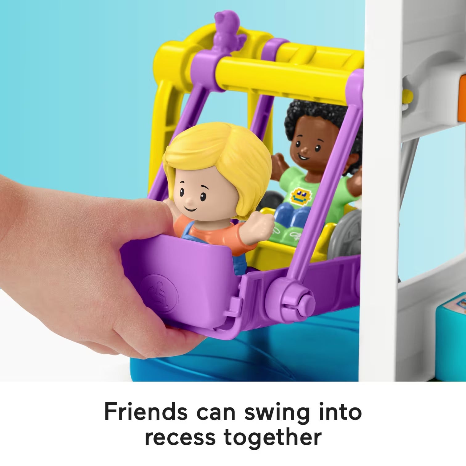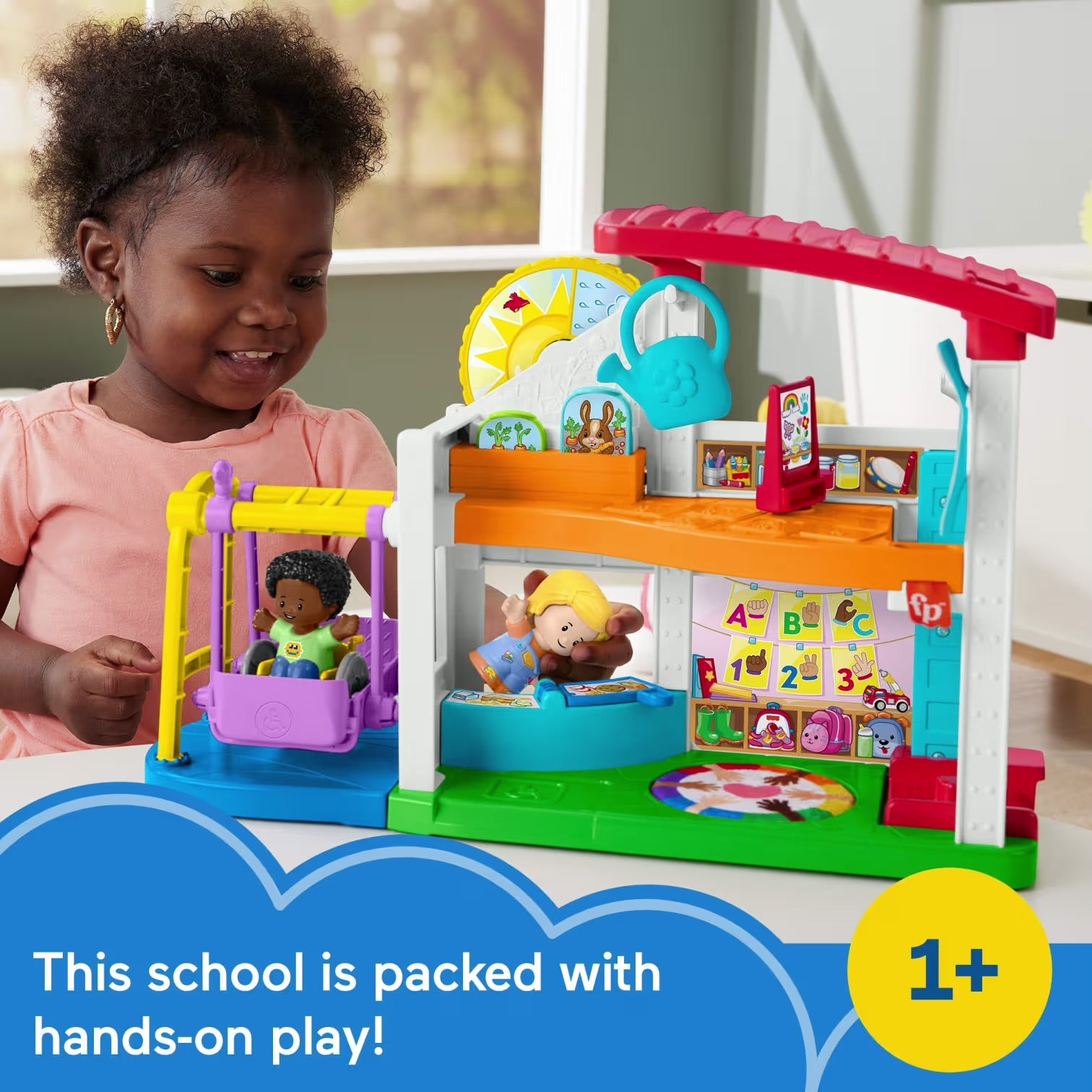 Everyone is welcome to play and learn at the Little People® Play for All School™ playset from Fisher-Price®. As toddlers explore the different areas of this school, they’ll discover fun activities and storytelling opportunities: from the classroom that flips from crafts time to snack time, to an art room and a garden to tend. And when it’s time for recess, kids can place the figures on the wheelchair-accessible swing so everyone can enjoy a ride!