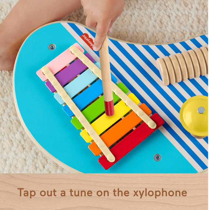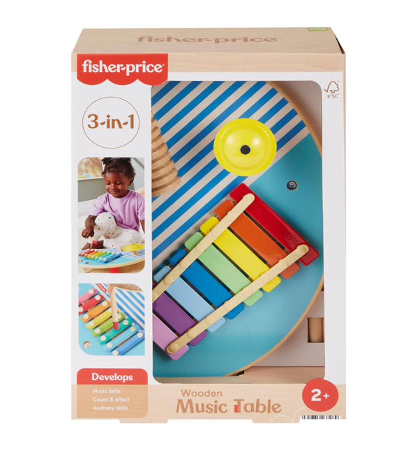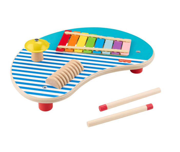 The Wooden Musical Table from Fisher-Price combines 3 percussion instruments into one fun toddler music toy. Kids can find their rhythm and exercise their fine motor skills using the mallets to play the xylophone, cymbal and guiro.