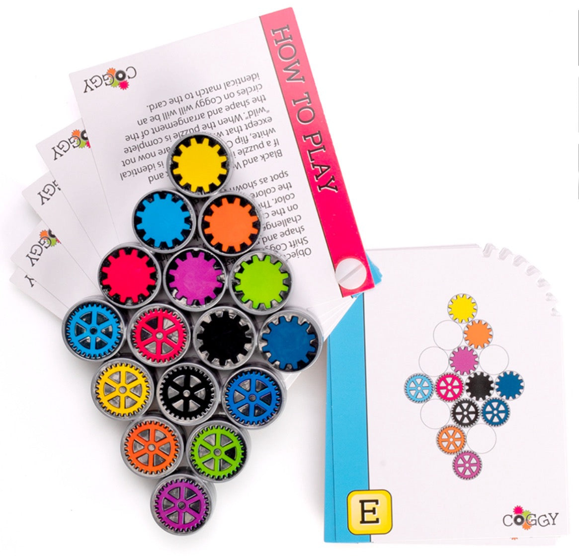 Moving from one challenge card to the next, it's up to you to fold this connected collection of sixteen colorful gears into the perfect positions that match each image.