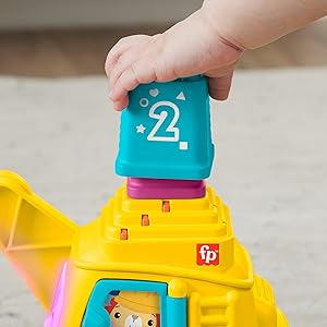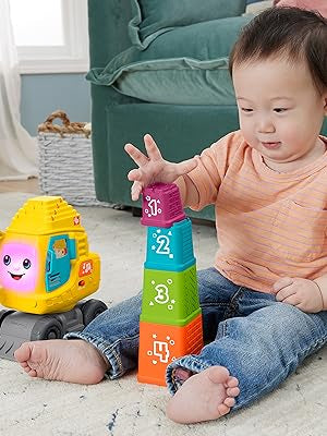 Babies and toddlers will love this toy construction vehicle that features lots of different ways to play. From push-along crawling action and rewarding stacking block play to exploring cause and effect, this toy will keep your little one engaged all while introducing numbers, counting, shapes and colors in a fun, imaginative way!