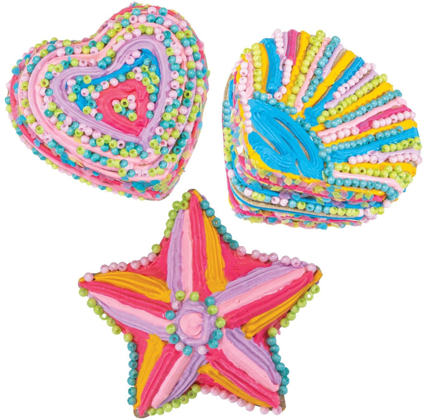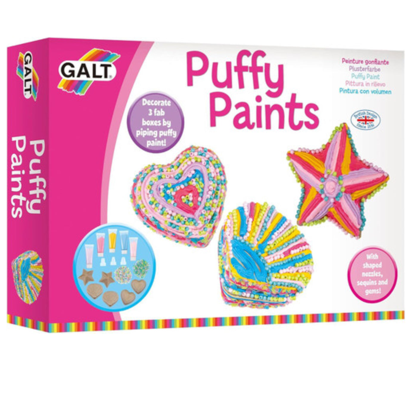 This colourful and fun decorating kit contains everything young artists need to decorate paper moulded boxes with puffy paint, including 5 squeezy tubes of vibrant puffy paints, 3 cute paper moulded boxes in star, heart, and shell shapes, and 3 shaped nozzles for creating unique designs. With sequins and beads included, children can add extra sparkle to their creations, making each piece uniquely theirs.