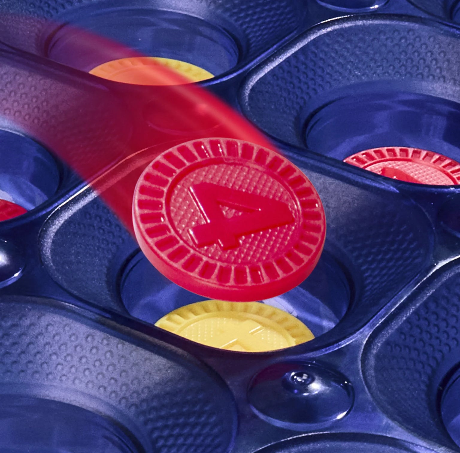 Everyone plays at once in the Connect 4 Frenzy game, an exhilarating, fast take on the original Connect 4board game! Instead of dropping discs, players go for 4 in a row by bouncing them off the table and into spots on the grid. If a team’s disc lands in an opponent’s spot, they get to steal it! In this unpredictable game, the lead can change within seconds, as players sink discs, swipe spots, and sabotage opponents. Want to amp up the challenge? Try more ways to play: go for just the corner or center spots.