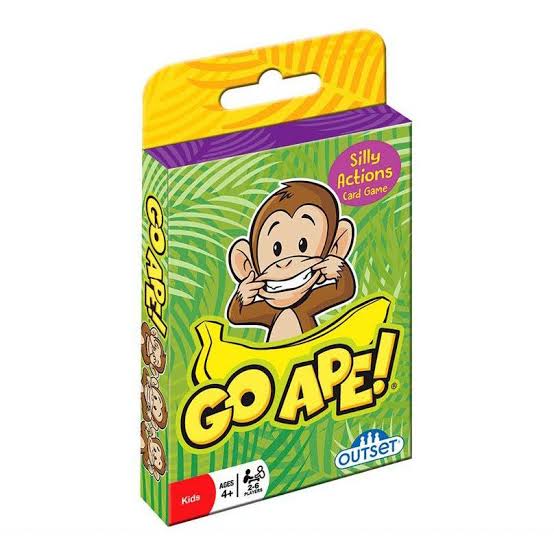 Why go fish when you can Go Ape! This hilarious and interactive card game is available in an easy to travel hang tab box. Get ready to get silly any time, any where and act your heart out! Instead of asking other players for a card, act out the funny monkey picture on the card! Collect the most monkey matches to win. If you like making funny faces and acting like a monkey, you'll go bananas over the Go Ape! Card game!.