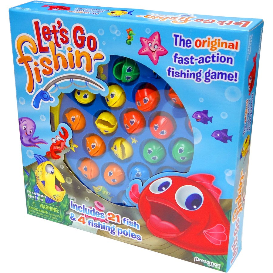 This classic kids game teaches hand-eye coordination as players use their mini fishing poles to try to catch the most fish. The challenge is that the board game spins, and the fish open and close their mouths. With 21 fish and 4 fishing rods, there’s plenty of fishing fun in this fast-paced competition, and these fish are as hungry as hungry hippos. Let’s Go Fishin’ is a fishing toy that’s great for playing at home or as a travel game–it will lure kids into playing over and over again. For 1-4 players ages 4 and up. Requires 1C battery (not included).
