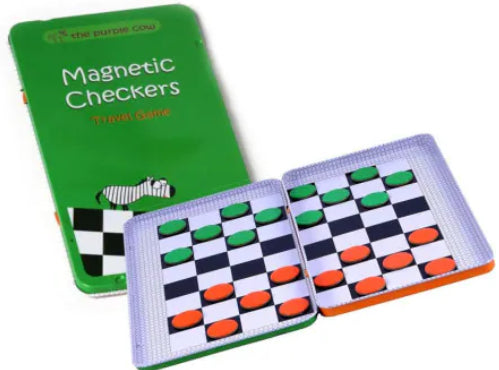 One of Purple Cow's line of Magnetic travel games. Compact and chique, there is a variety of 25 classic board games designed in a slim tin case, printed both sides with magnetic playing pieces. Fun and affordable travel games, for all ages.