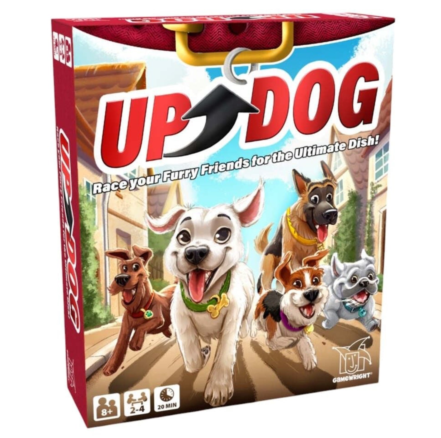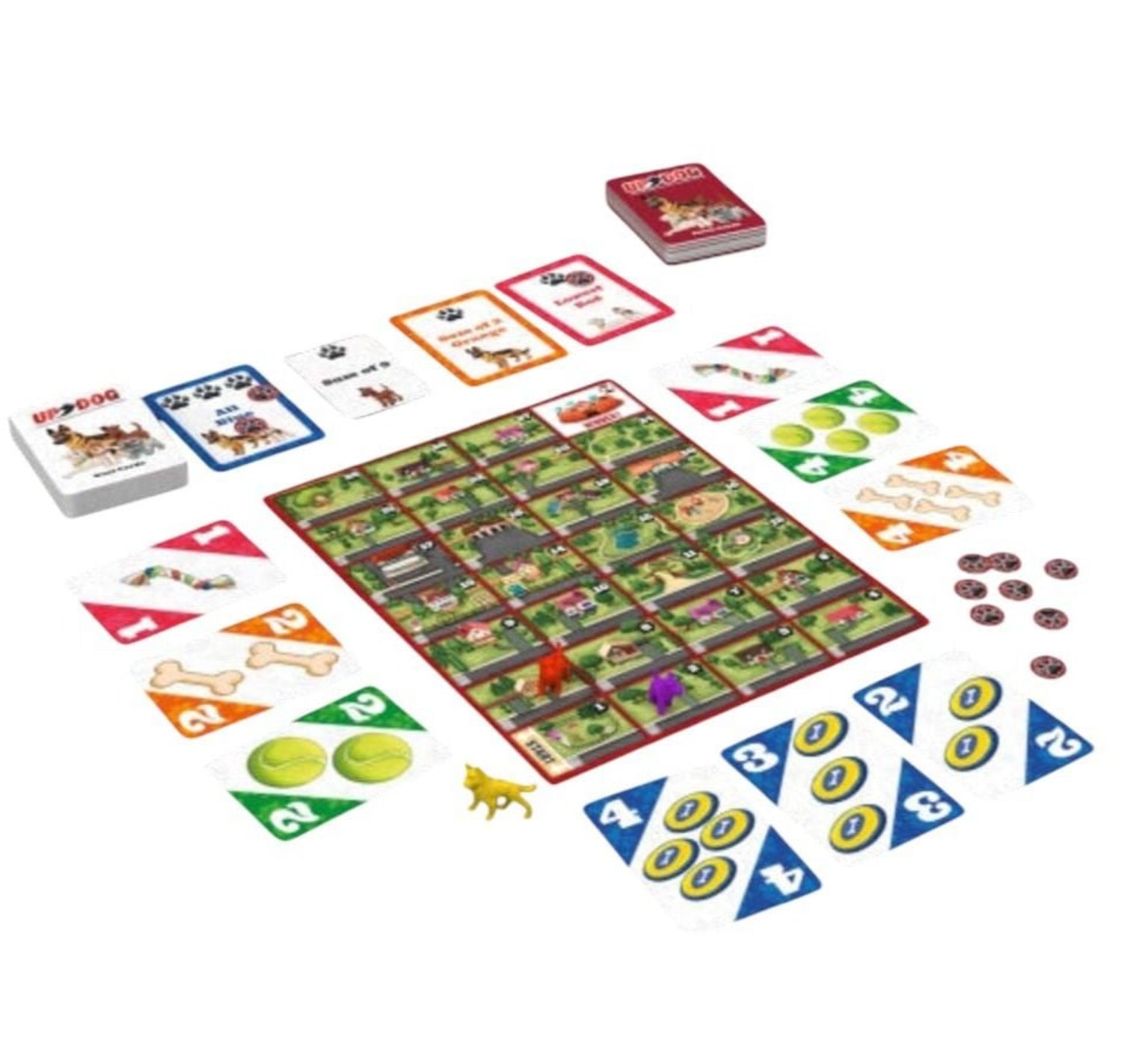 Up Dog is a fun and easy-to-learn card game where everyone plays fetch cards at the same time, to complete the goal cards in the center. The trick is, you want to be the ONLY doggie to complete a goal, otherwise no one gets to move! The race is on, will you be the dog to have its day? Or will you be stuck in the doghouse?