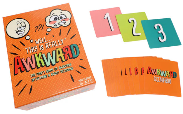 If you’re in the mood to have some fun with a side of laughs, Awkward is the perfect fix! It’s a great way to bring out the silliness in even the most bashful of people and the ultimate ice breaker – Easy rules and loads of laughter! It is the official party game of random situations and dodgy decisions.